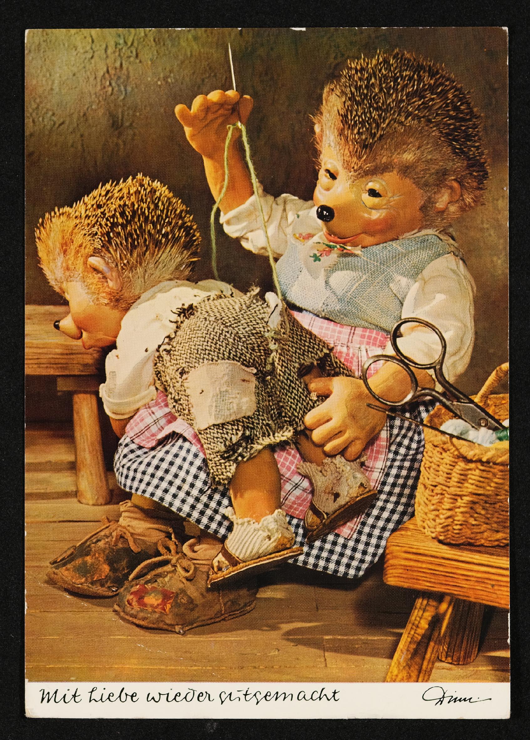 | Beschreibung | Ansichtskarte "Mit Liebe wieder gutgemacht" vom 4. April 1970 an Veronika Erntl |
