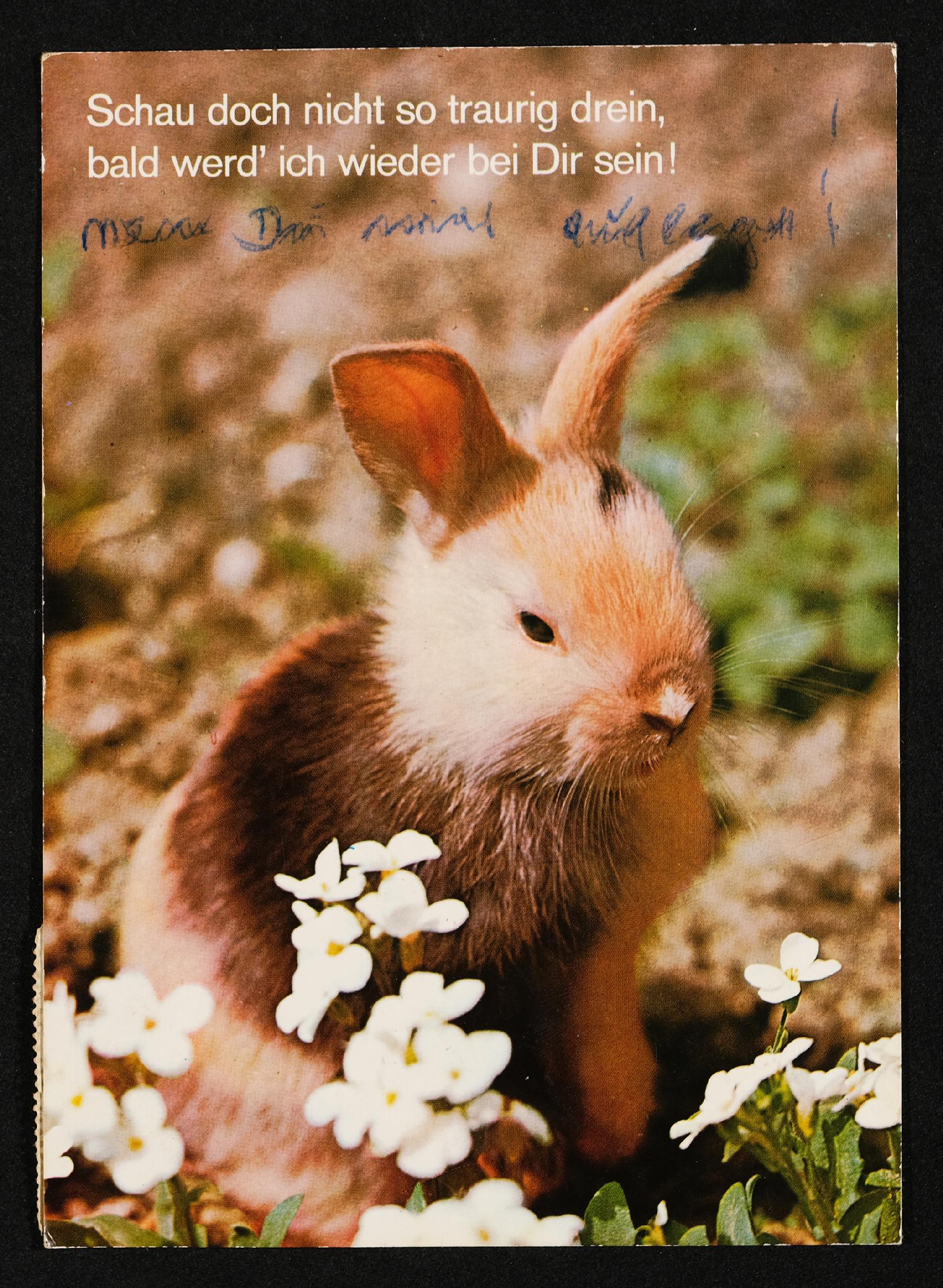 | Beschreibung | Ansichtskarte mit Hasenmotiv vom 11. Mai 1970 an Veronika Erntl |