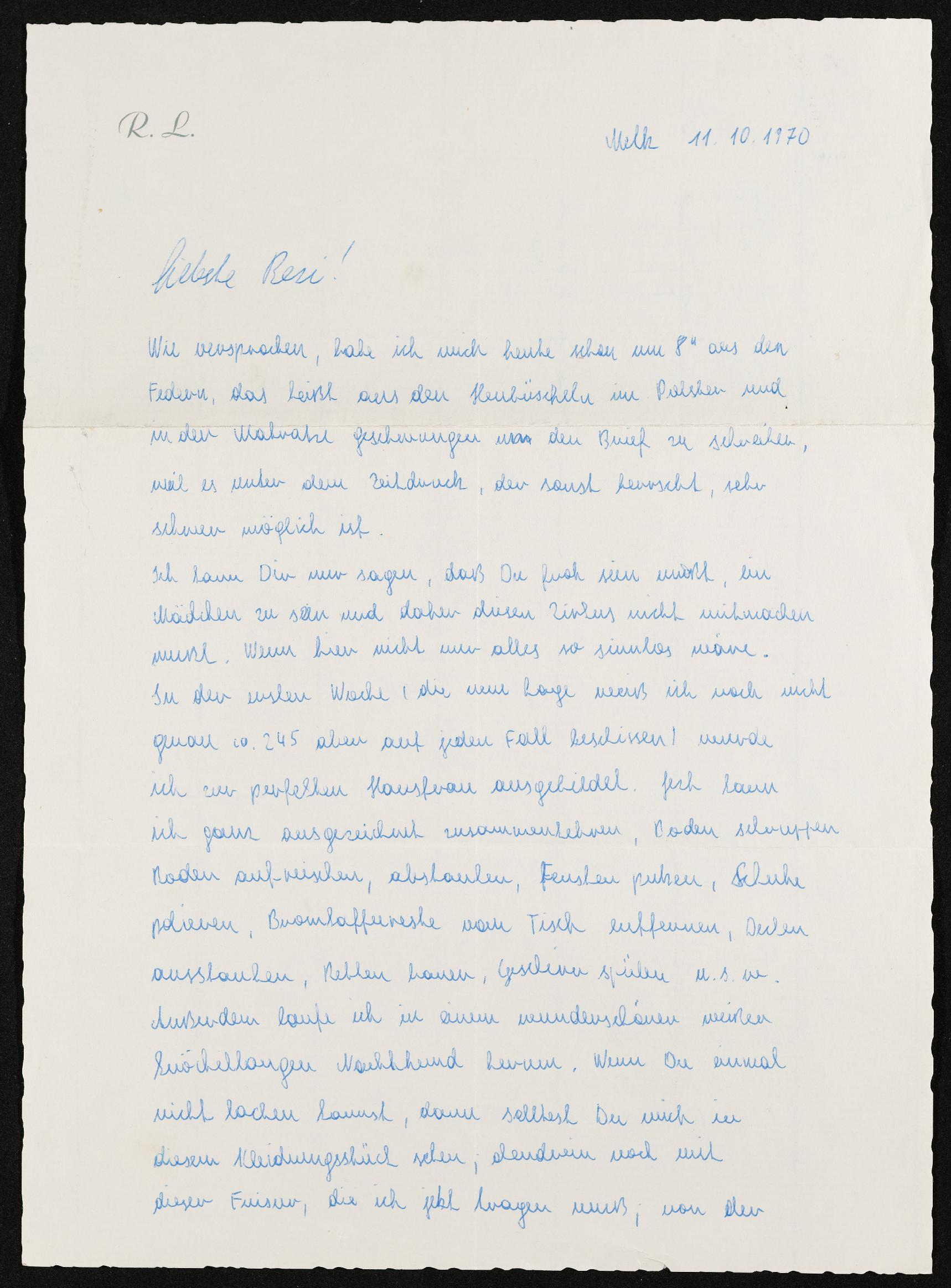 | Beschreibung | Brief vom 11. Oktober 1970 von Rainhart an Veronika Erntl |