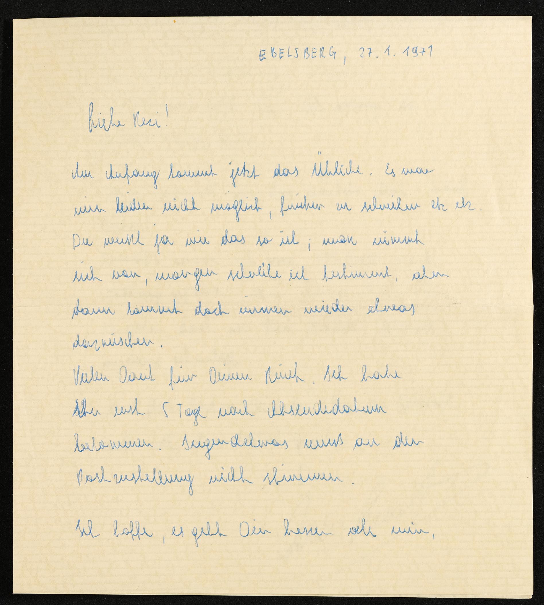 | Beschreibung | Brief von Rainhart an Veronika Erntl, 27. Jänner 1971 |