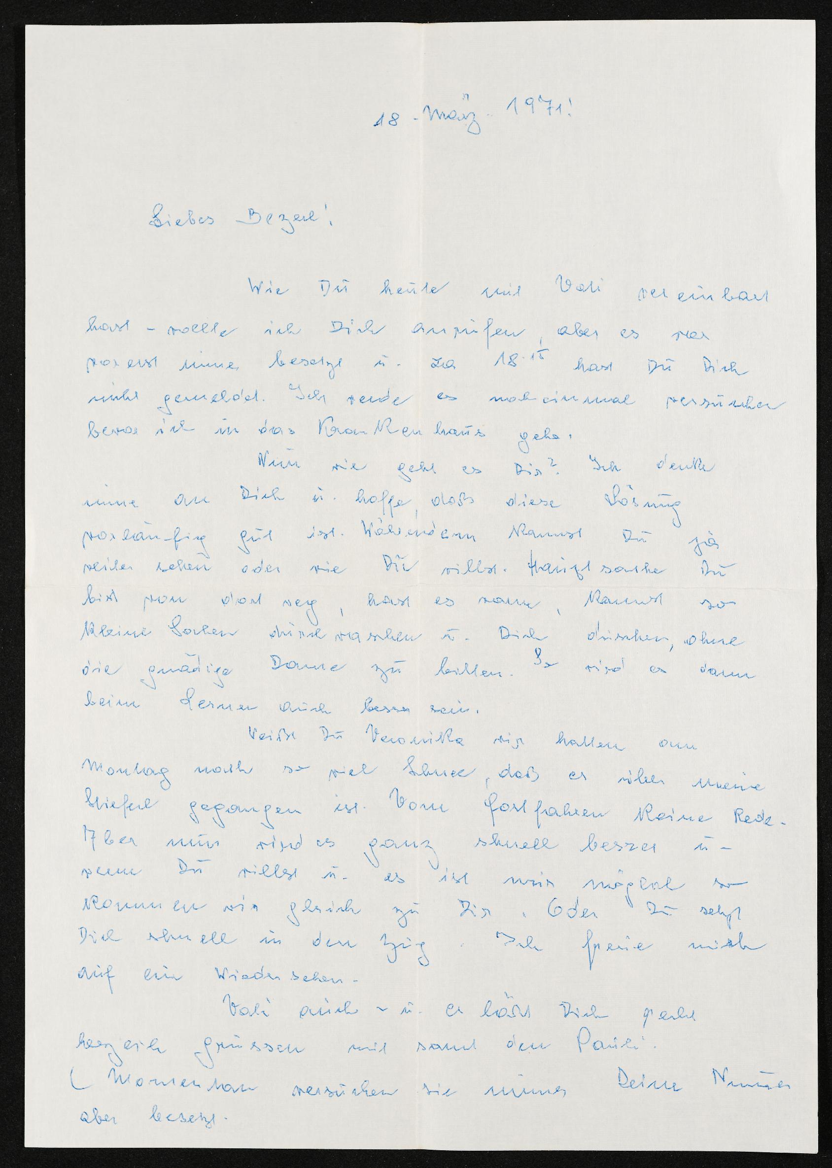 | Beschreibung | Brief von den Eltern an Veronika Erntl, 18. März 1971 |