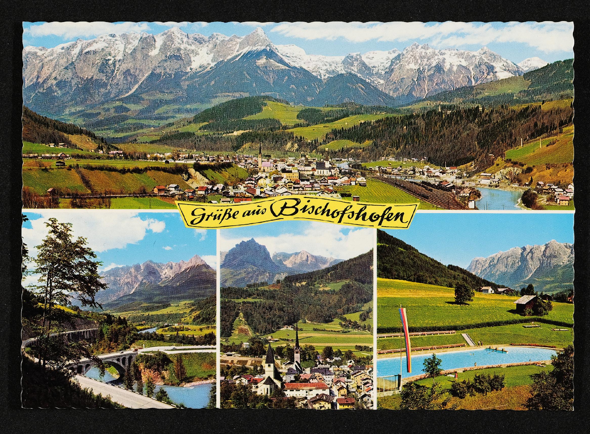 | Beschreibung | Ansichtskarte "Grüße aus Bischofshofen". Die Ansichtskarte liegt dem Brief von Hansi an Veronika Erntl bei. Datum des Poststempels am Briefkuvert: 11. Juni 1971 |