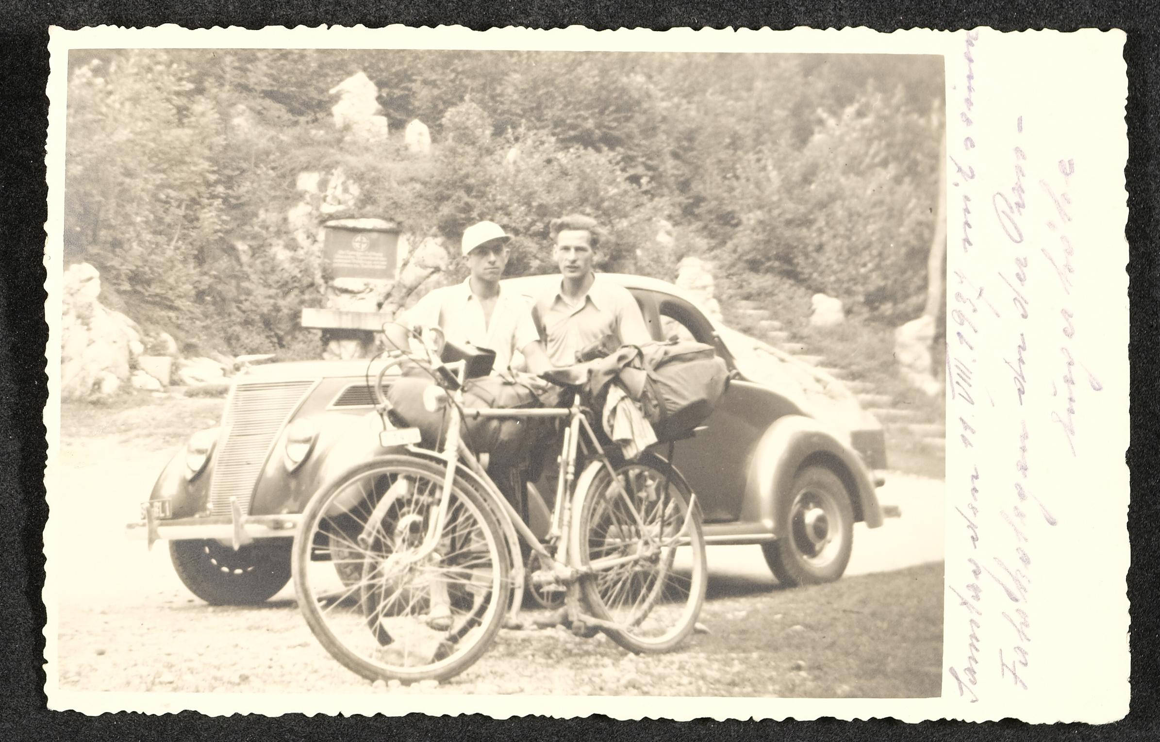 | Beschreibung | Fahrradausflug auf den Pass Lueg im Bundesland Salzburg, Ignaz Schönberger rechts mit einem Sportkollegen, 11. August 1937 |