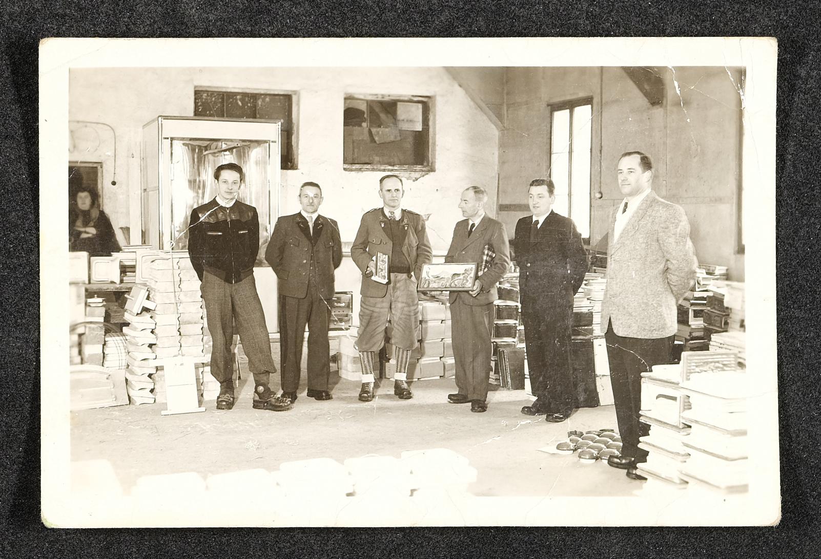 | Beschreibung | Franz Pieslinger, vierter von links, bei der Pensionierung in der Firma Doleschal in Steyr |
