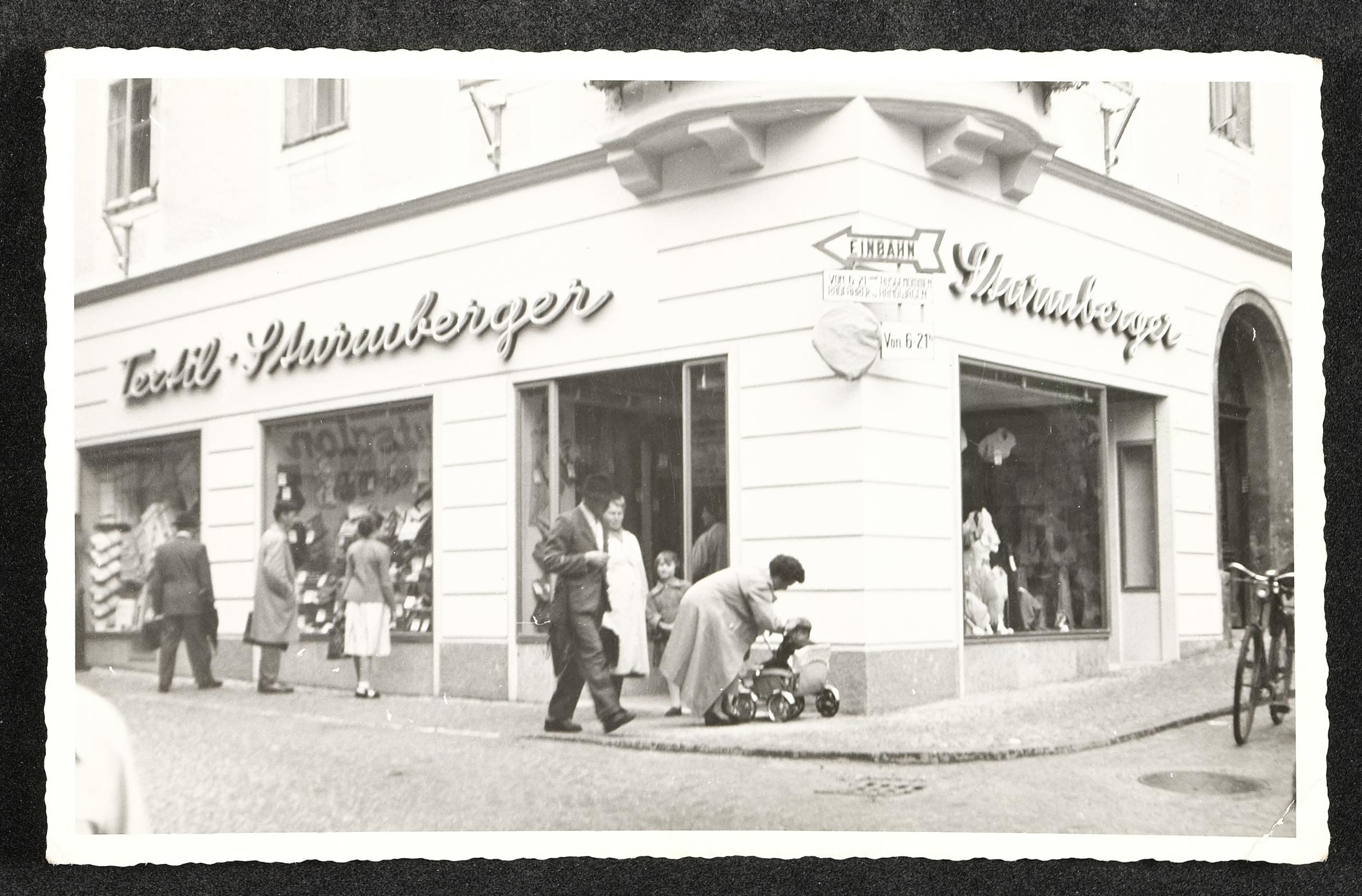 | Beschreibung | Passanten vor dem Textilgeschäft Sturmberger in Steyr |