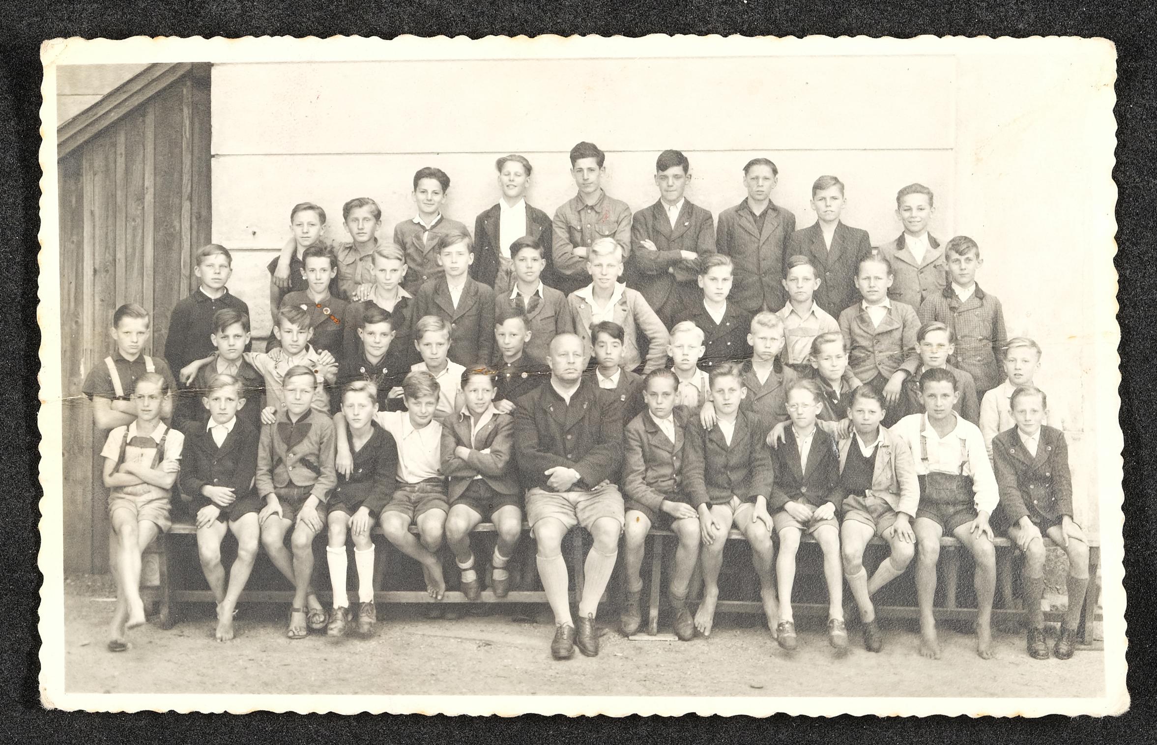 | Beschreibung | Klassenfoto Wehrgraben Schule, oberste Reihe mit weißem Hemd: Alois Schönberger junior |