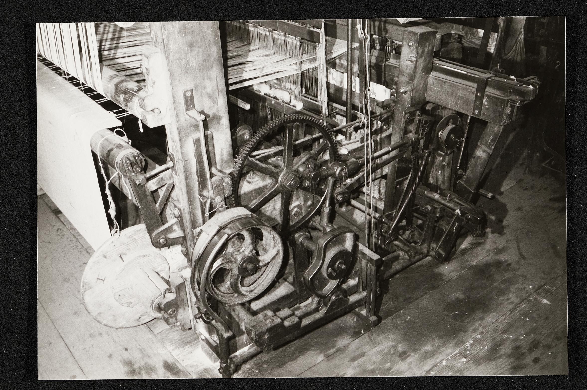 | Beschreibung | Seitenansicht eines Webstuhls in einer Weberei |