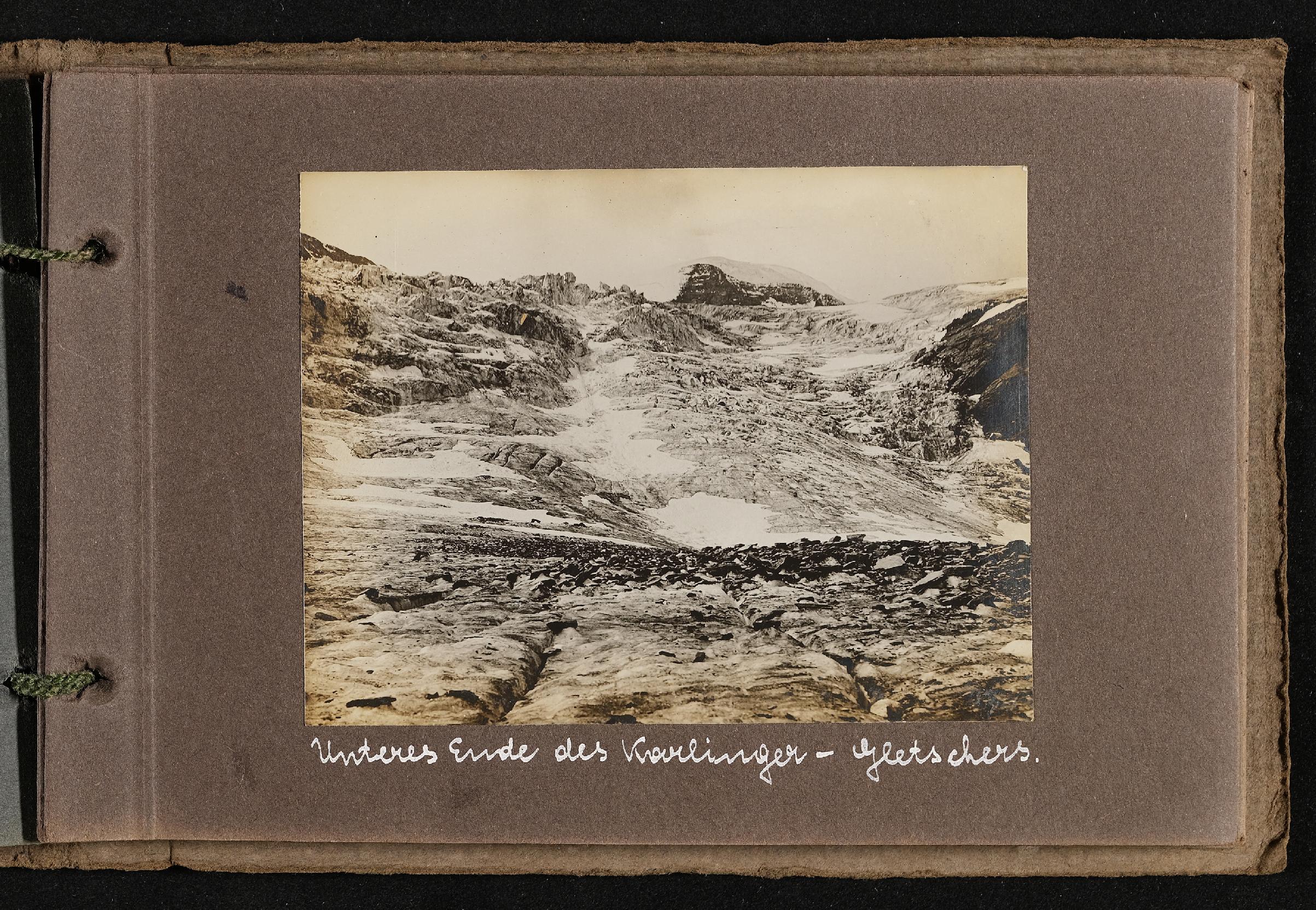 | Beschreibung | Fotoalbum von Ludwig Pullirsch, Blatt 14. Unteres Ende des Karlingergletschers |