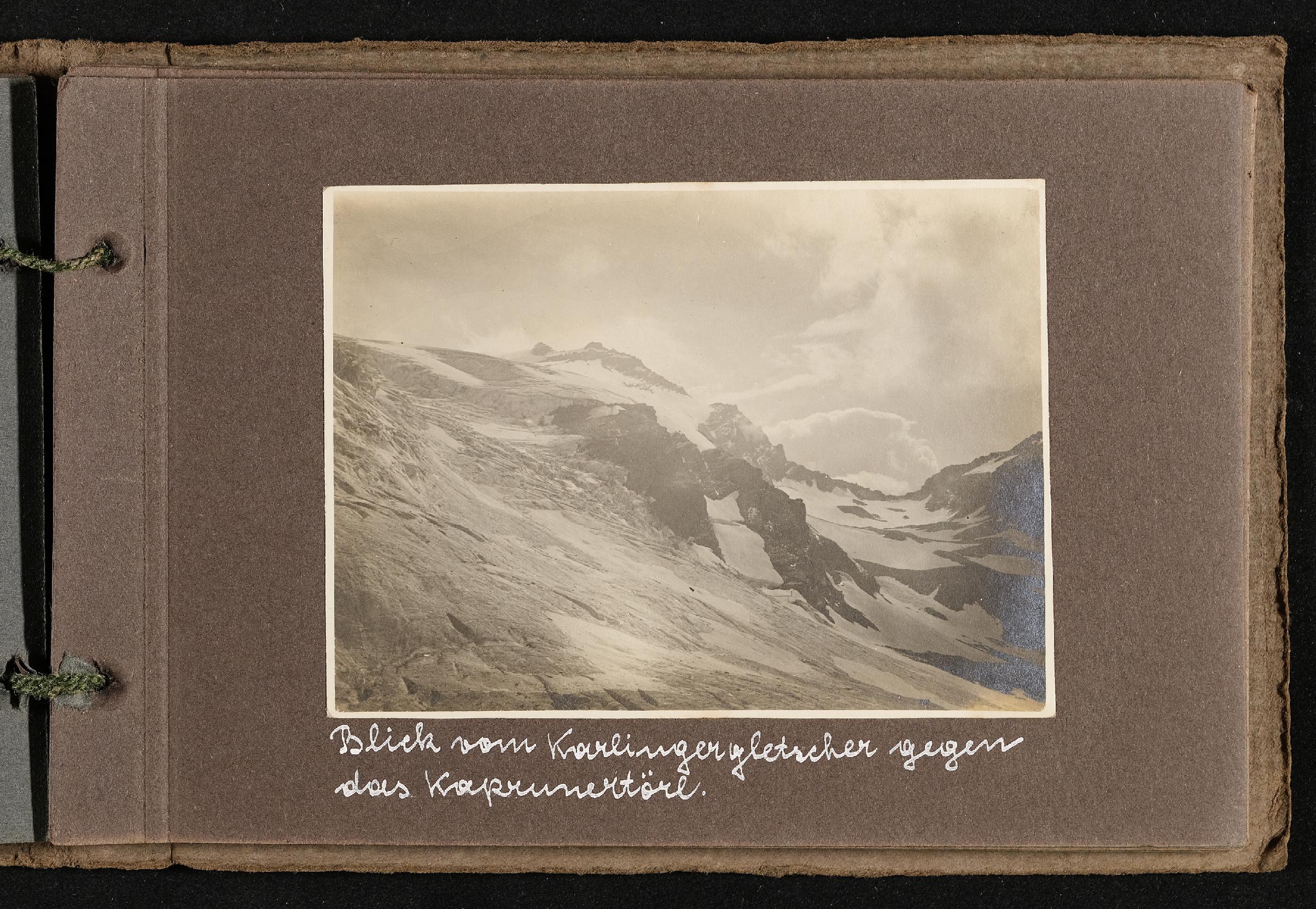 | Beschreibung | Fotoalbum von Ludwig Pullirsch, Blatt 16. Blick vom Karlingergletscher gegen das Kapruner Törl |