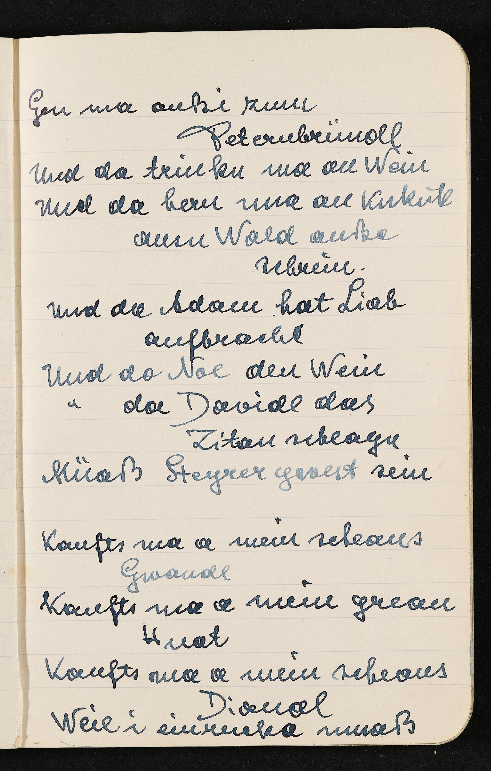 | Beschreibung | Notizbuch von Ludwig Pullirsch: Text "Gen ma außi zum Peternbründl", Seite 65 |