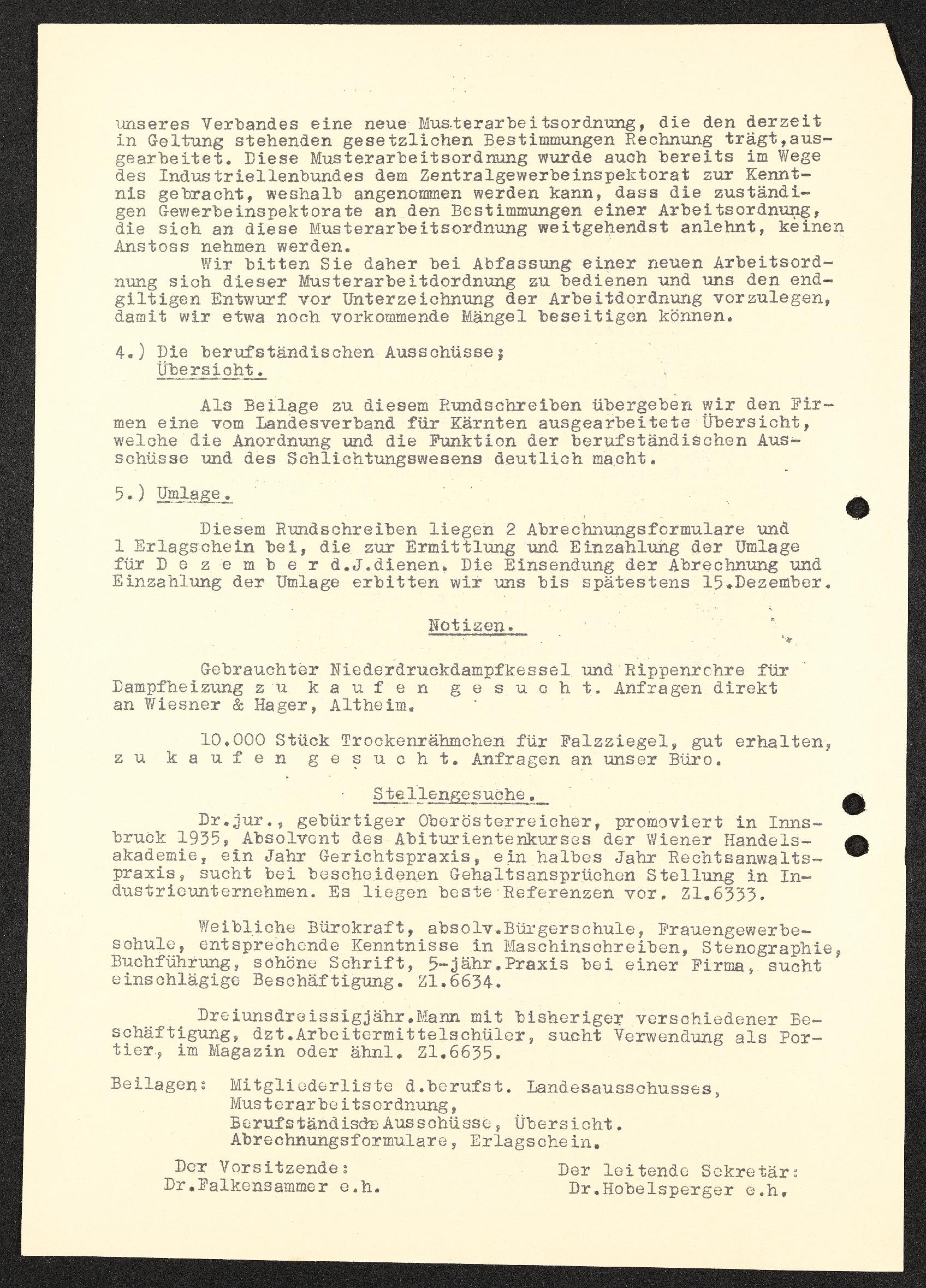 | Beschreibung | Rundschreiben Industriellenverband Oberösterreich Nr. 19, Konstitutierung des berufsständischen Landesausschusses für Industrie und Bergbau in Oberösterreich am 1. Dezember 1937 |