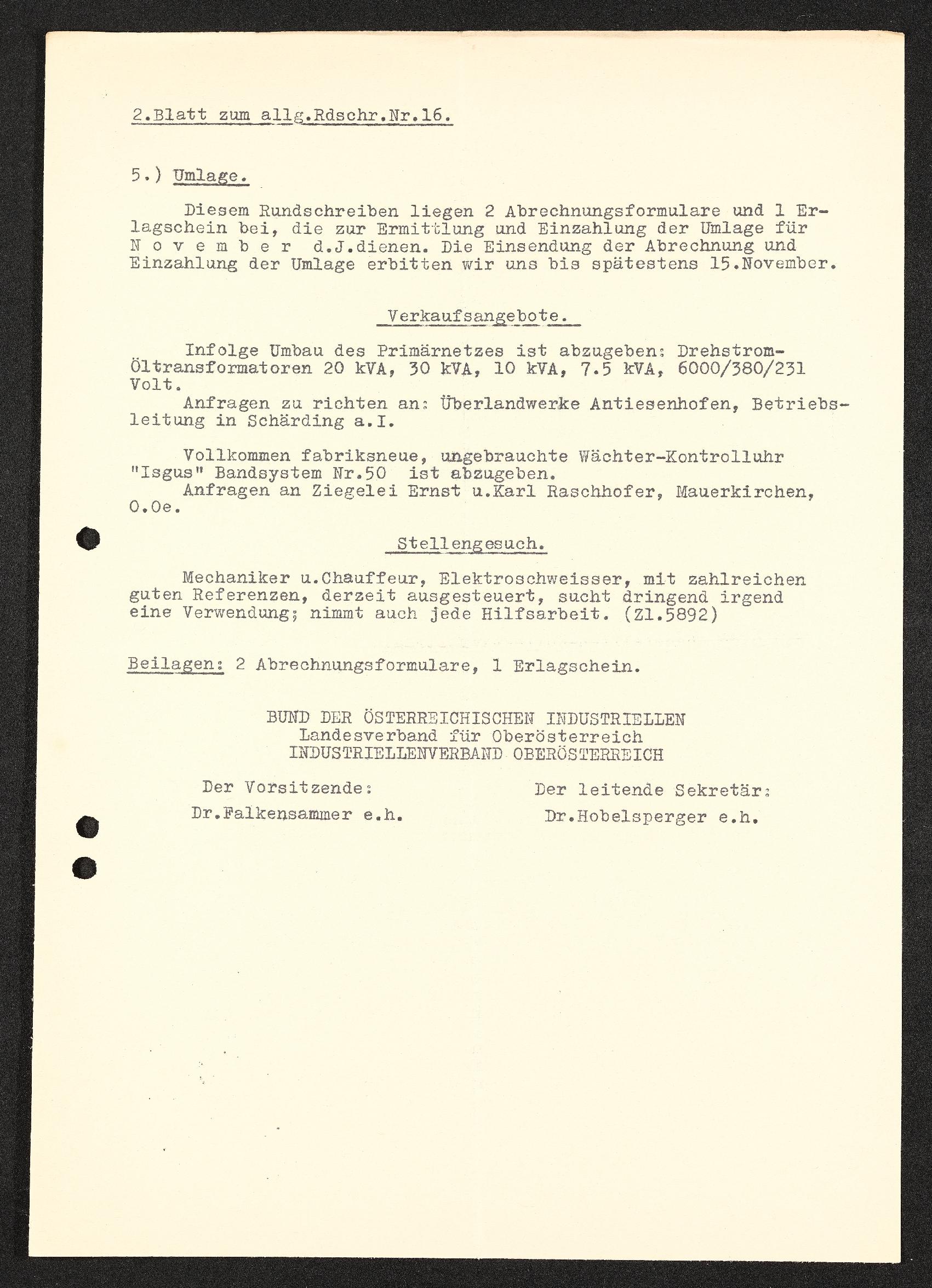 | Beschreibung | Rundschreiben Nr. 16, zweites Blatt zum allgemeinen Rundschreiben Nr. 10/37 |