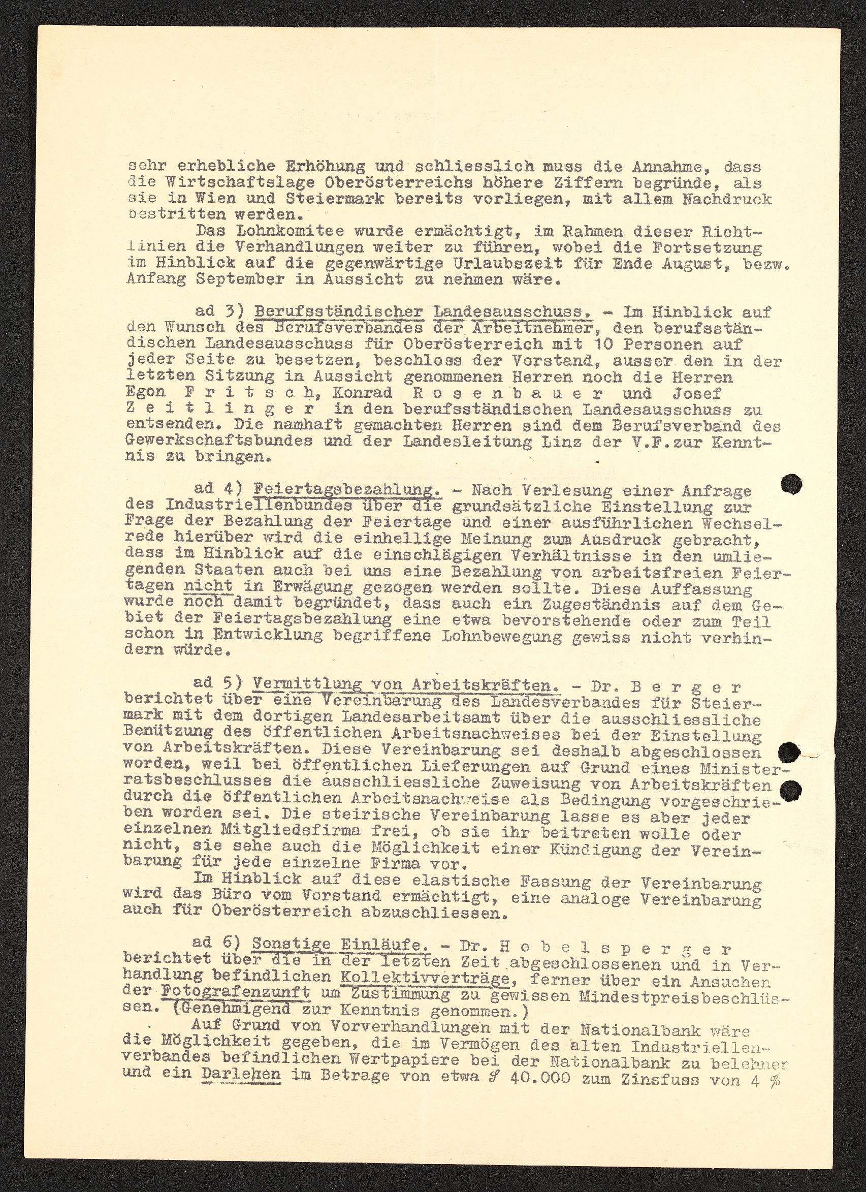 | Beschreibung | Gedächtnisprotokoll zur vierten Vorstandssitzung, Bund der österreichischen Industriellen Landesverband für Oberösterriech, Industriellenverband Oberösterreich |