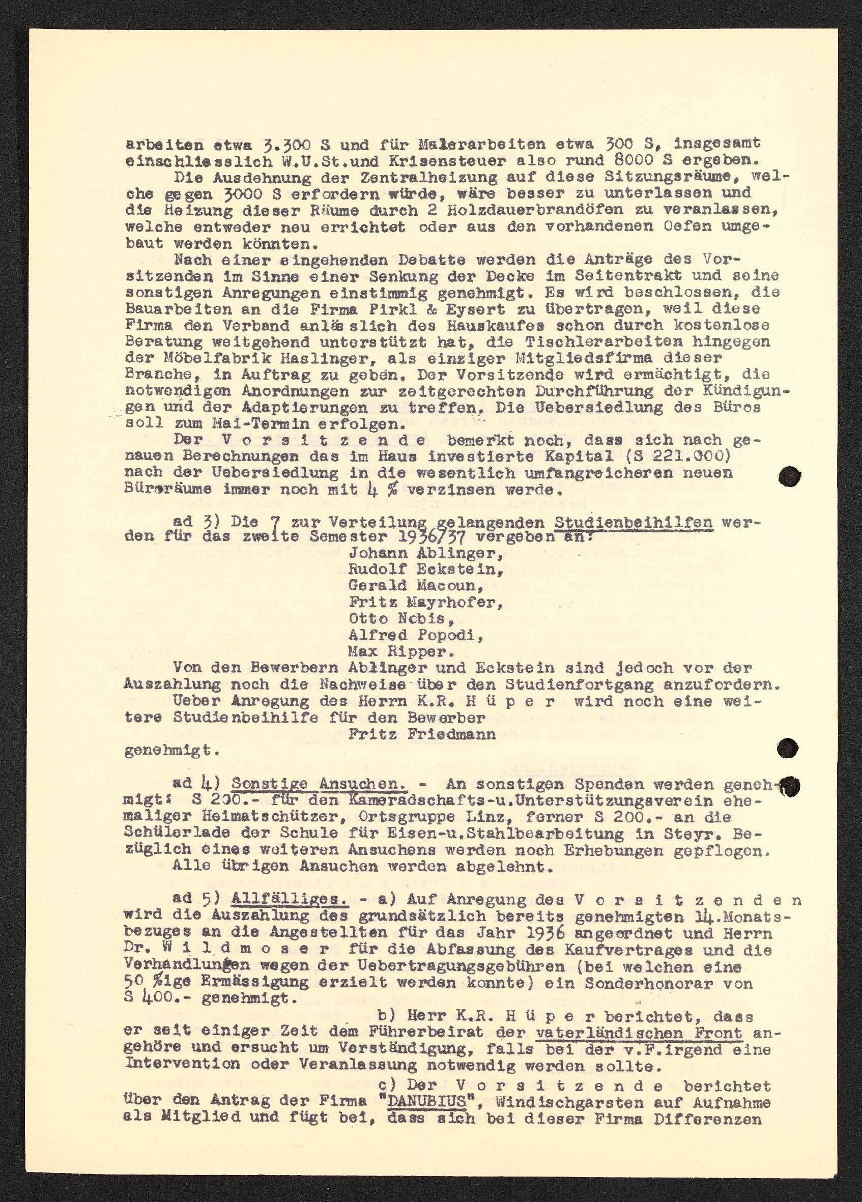 | Beschreibung | Gedächnisprotokoll zur 1. Vorstandssitzung am 22. Jänner 1937, Bund der österreichischen Industriellen Landesverband für Oberösterriech, Industriellenverband Oberösterreich |