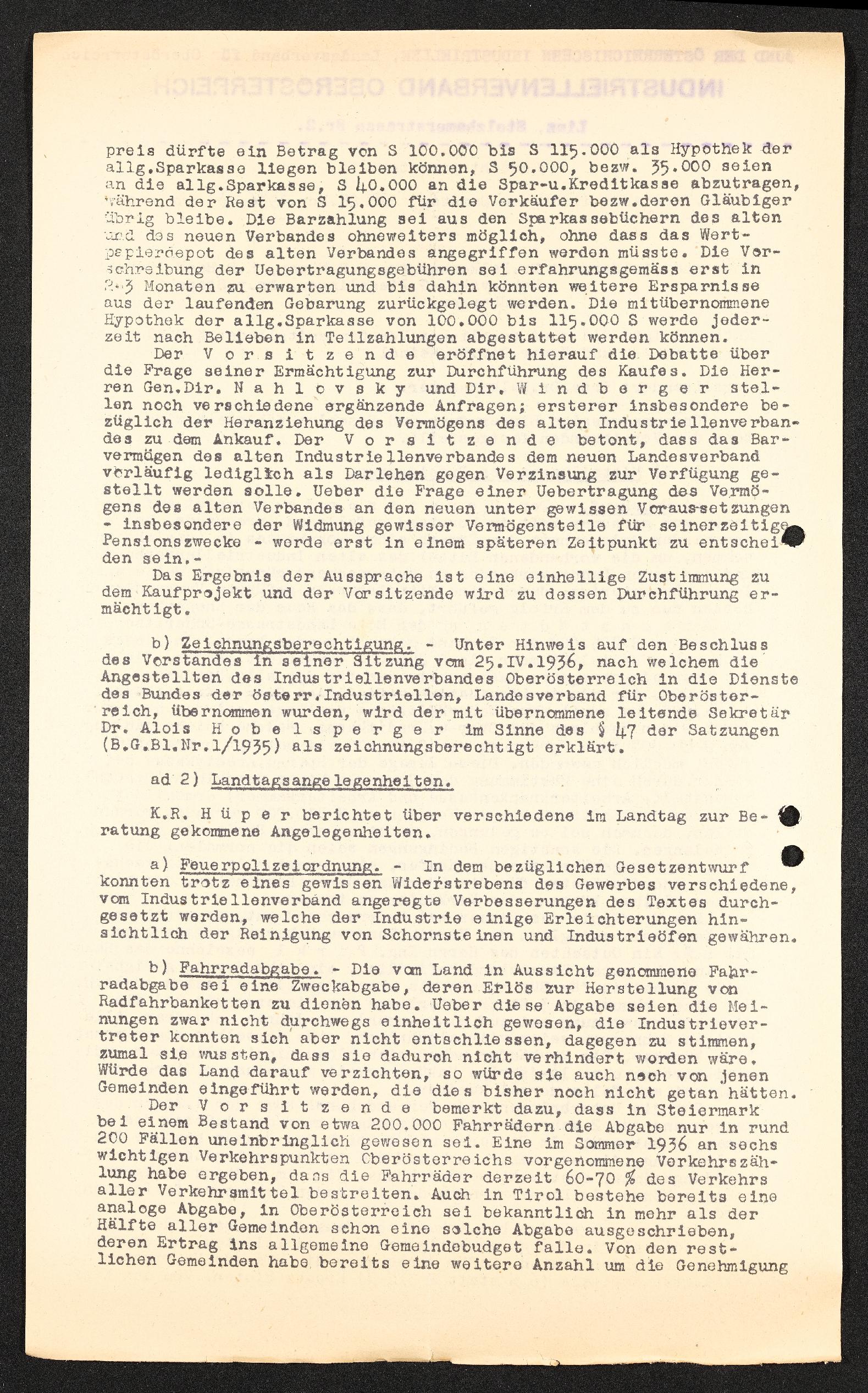| Beschreibung | Gedächnisprotokoll zur 11. Vorstandssitzung am 28. November 1936, Bund der österreichischen Industriellen, Landesverband für Oberösterriech, Industriellenverband Oberösterreich |