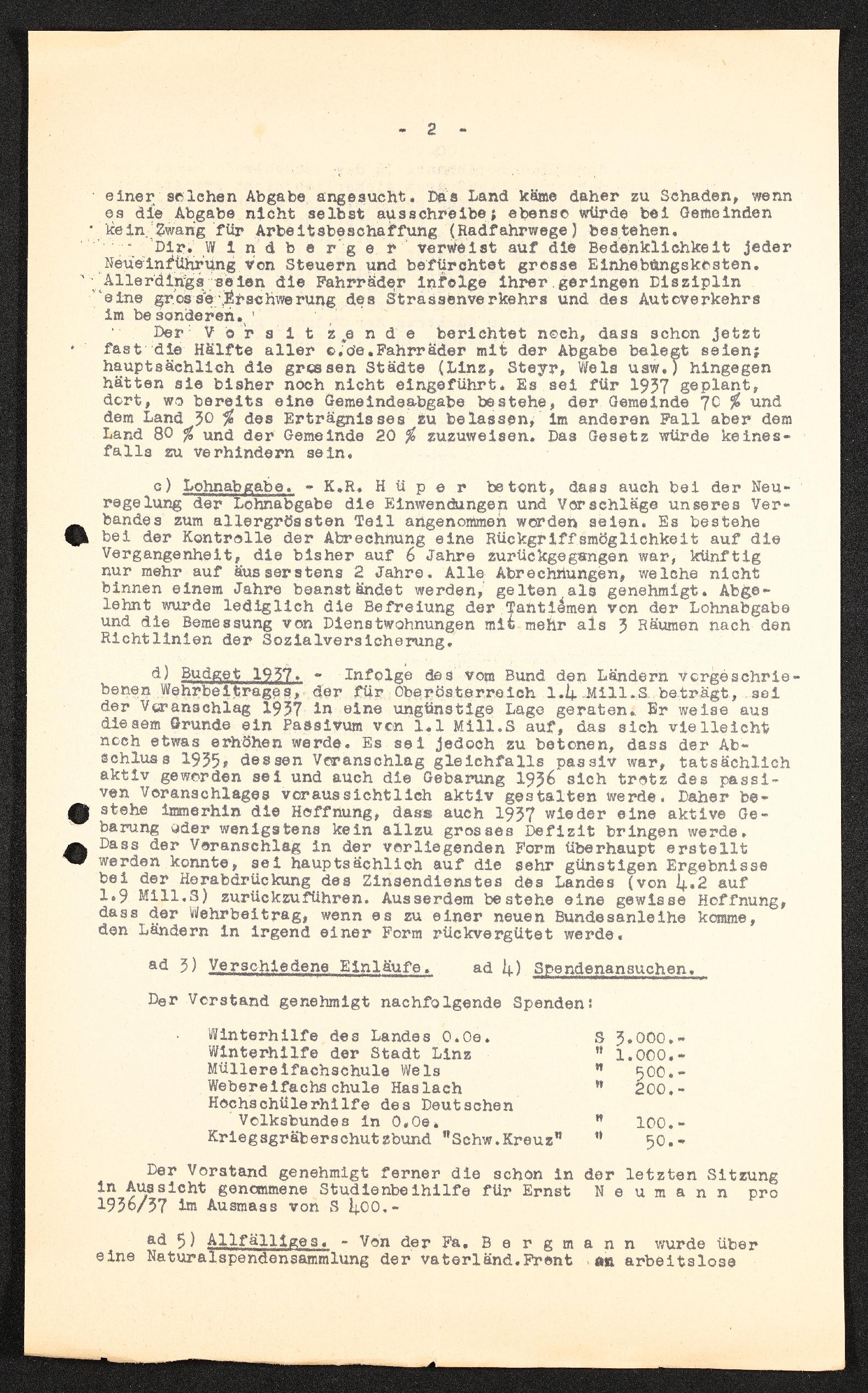 | Beschreibung | Gedächnisprotokoll zur 11. Vorstandssitzung am 28. November 1936, Bund der österreichischen Industriellen Landesverband für Oberösterriech, Industriellenverband Oberösterreich |