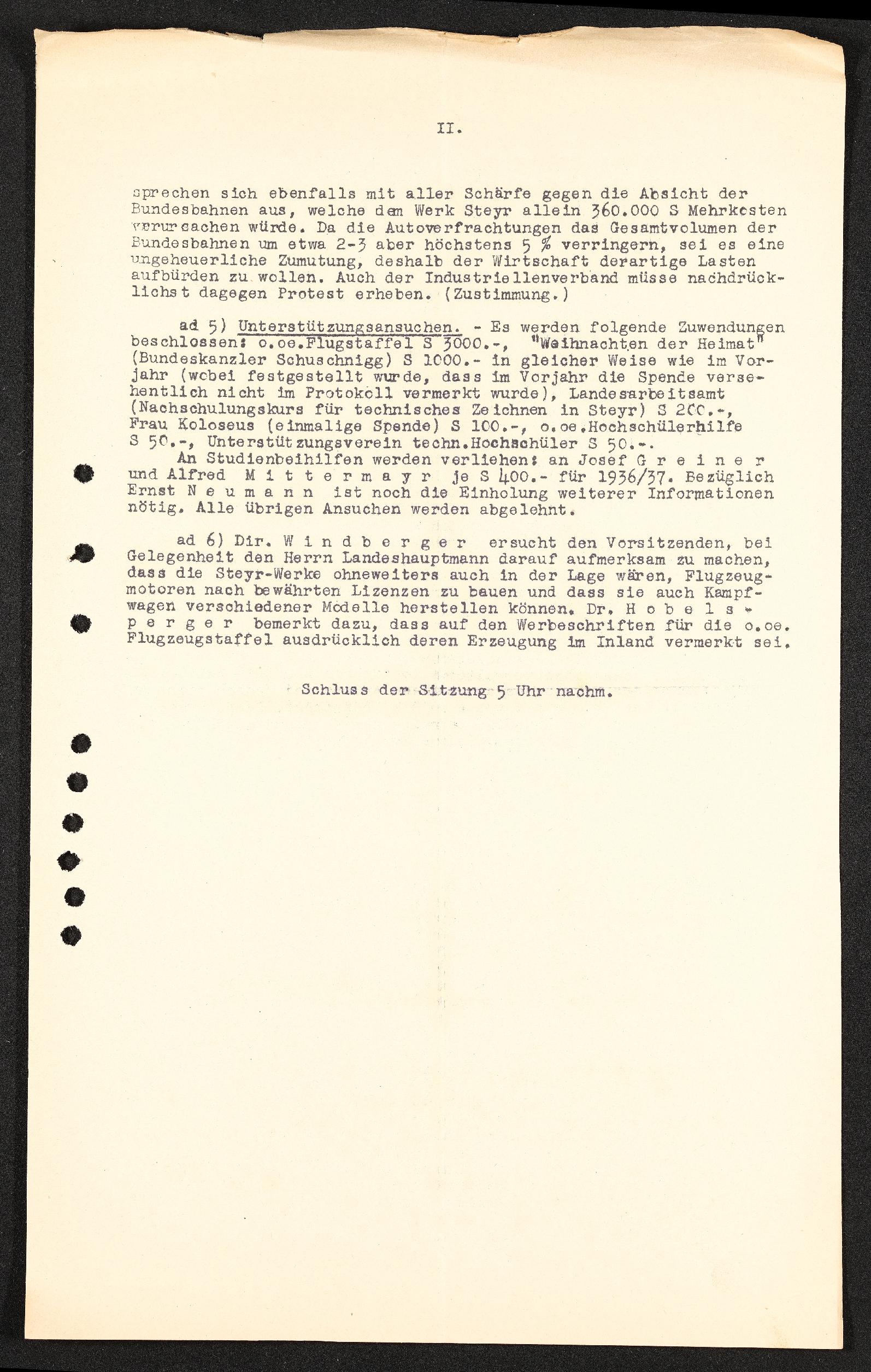 | Beschreibung | Gedächnisprotokoll zur 10. Vorstandssitzung am 15. Oktober 1936, Bund der österreichischen Industriellen, Landesverband für Oberösterriech, Industriellenverband Oberösterreich |