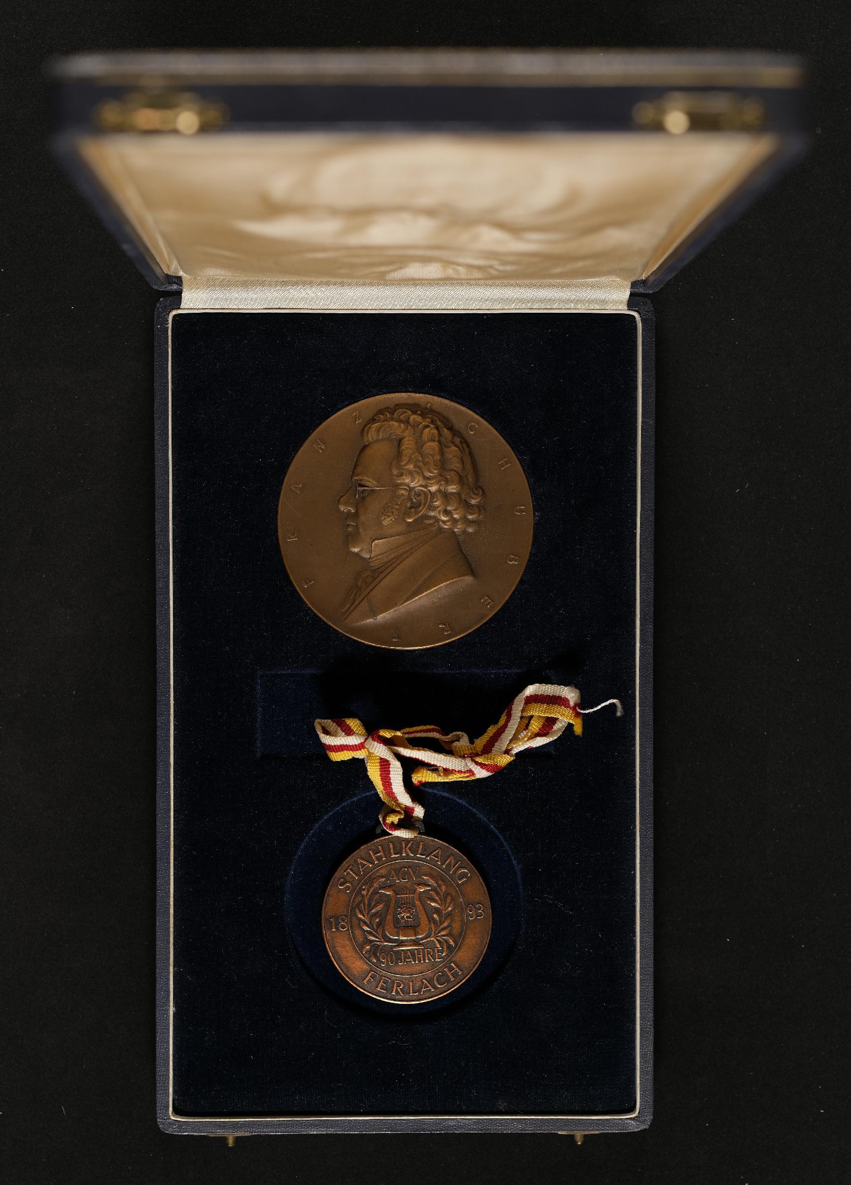 | Beschreibung | Erinnerungsmedaille der Gemeinde Ferlach, 90 Jahre Arbeitergesangsverein Stahlklang Ferlach 1893 |