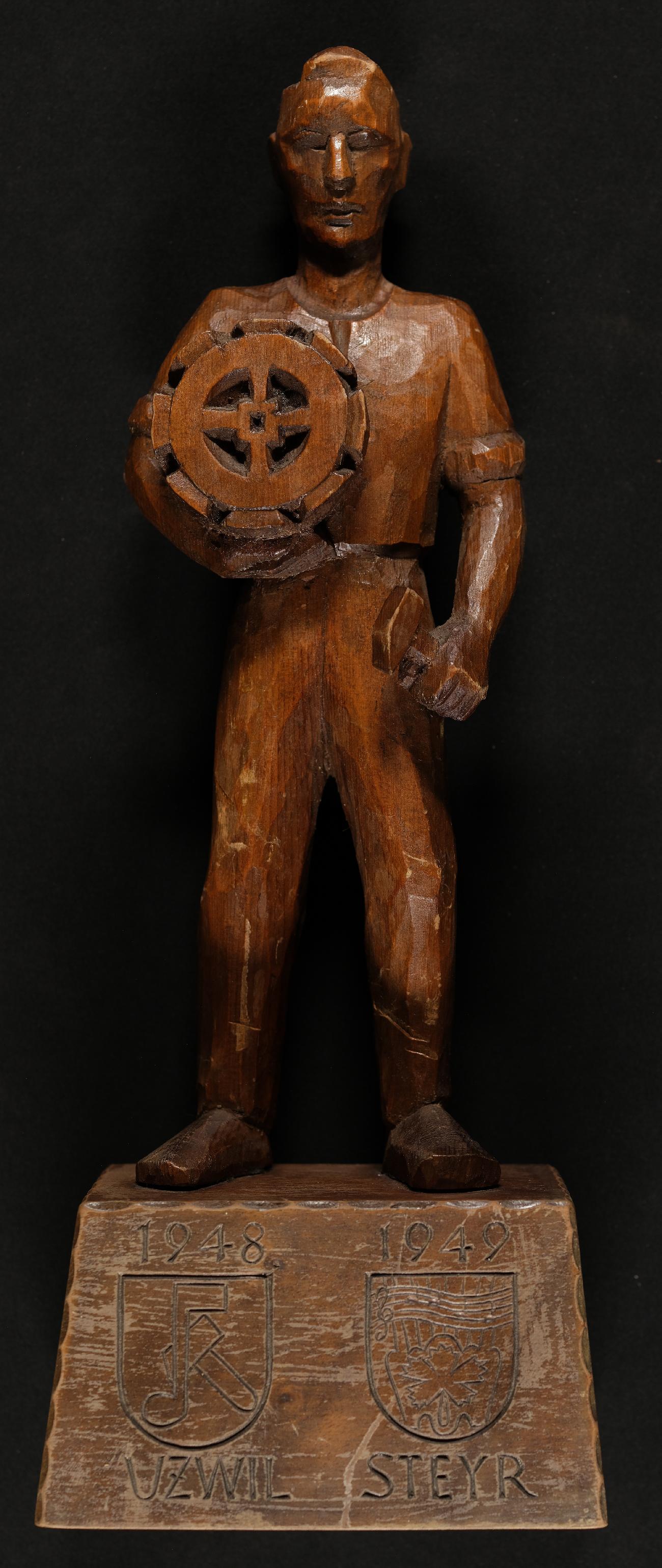 | Beschreibung | Holzfigur, aus Freundschaft gewidmet vom Arbeiter-Männerchor, Uzwil 1948, Steyr 1949 |