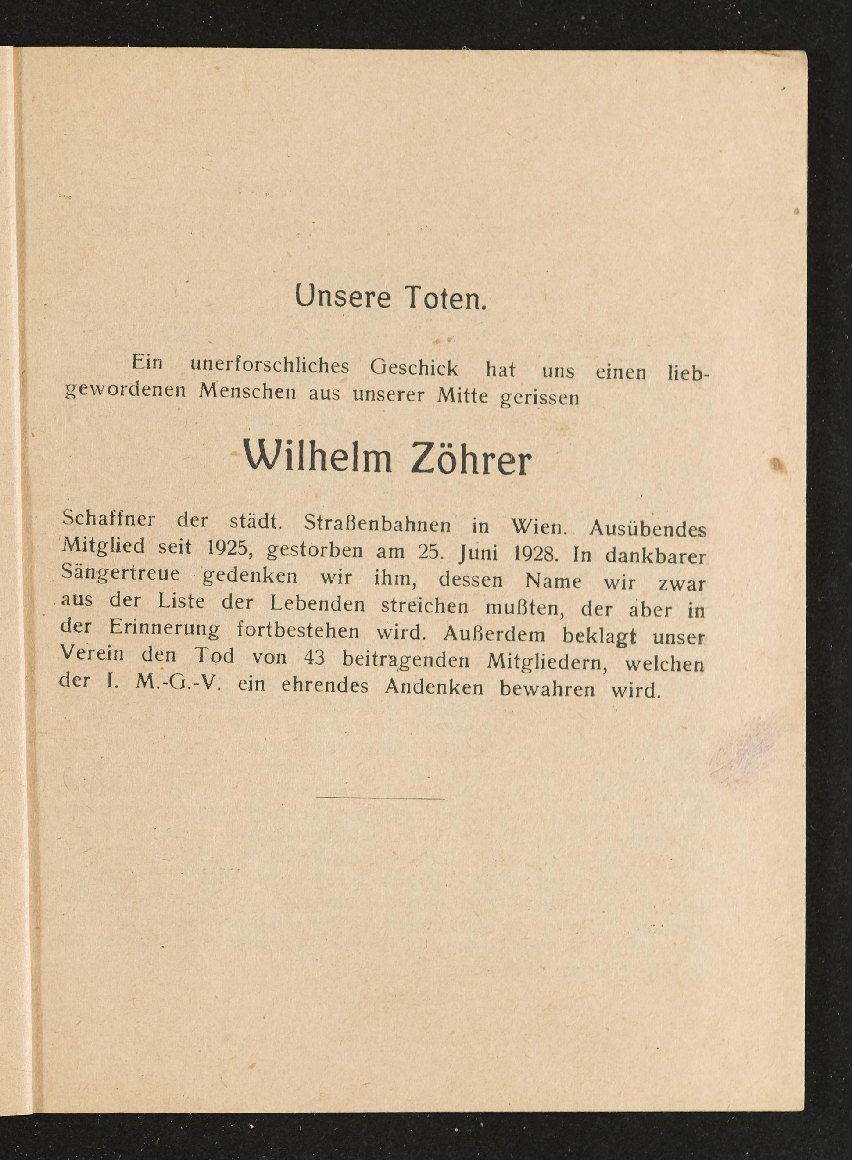 | Beschreibung | Jahresbericht des ersten Männer-Gesangsvereines der städtischen Straßenbahnen in Wien über das 26. Vereinsjahr 1928 |