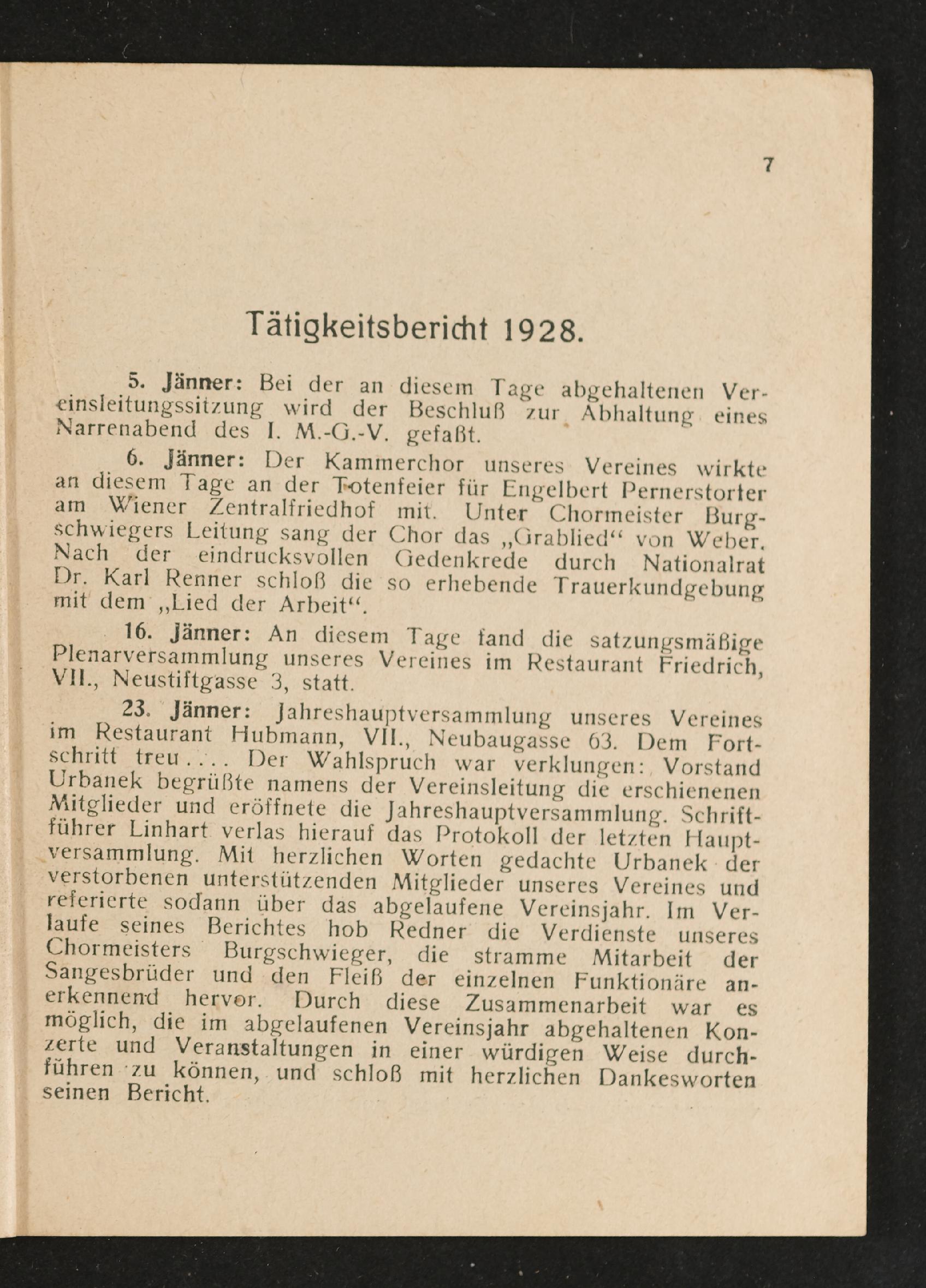 | Beschreibung | Jahresbericht des ersten Männer-Gesangsvereines der städtischen Straßenbahnen in Wien über das 26. Vereinsjahr 1928 |