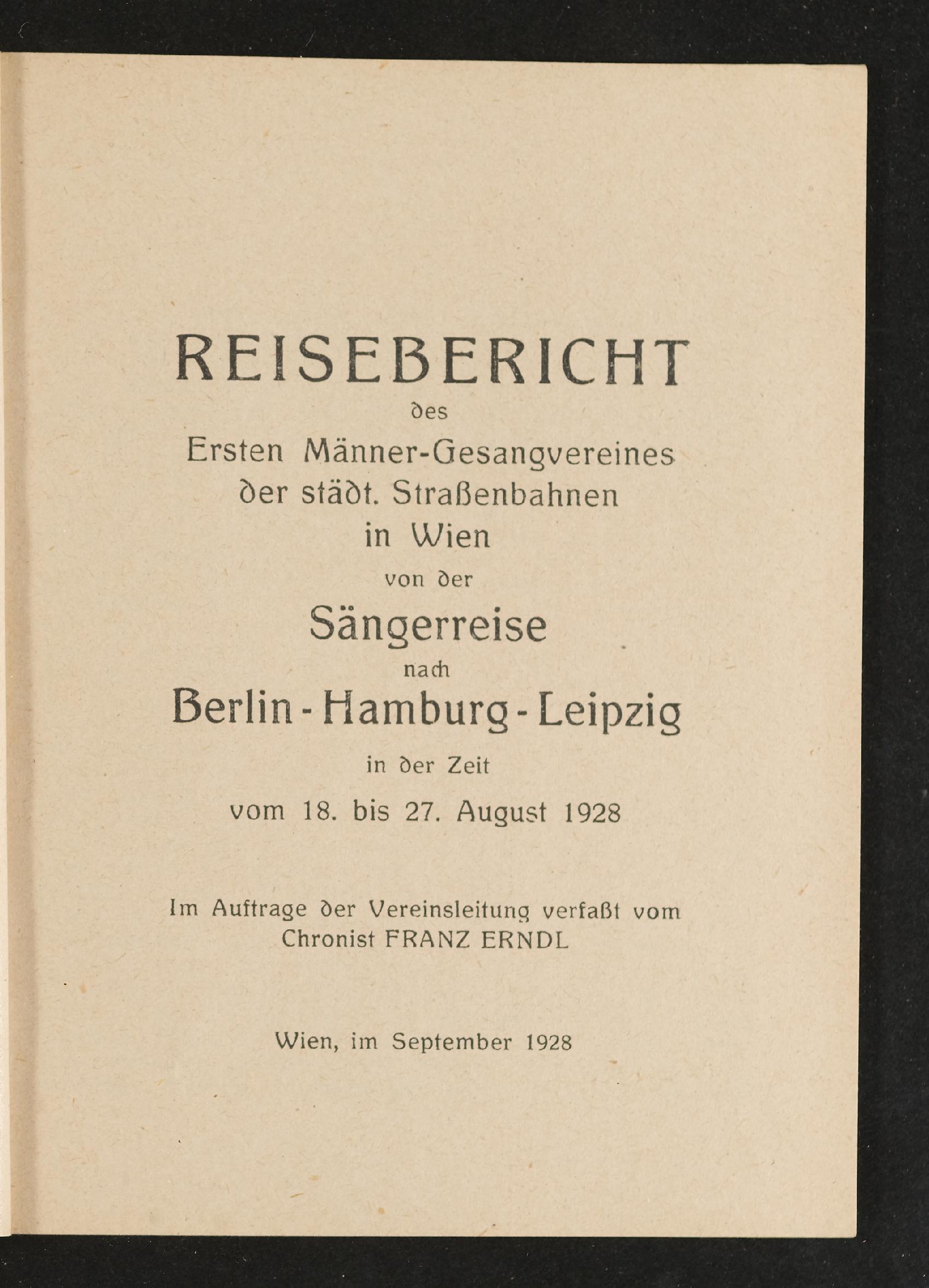 | Beschreibung | Jahresbericht des ersten Männer-Gesangsvereines der städtischen Straßenbahnen in Wien über das 26. Vereinsjahr 1928 |