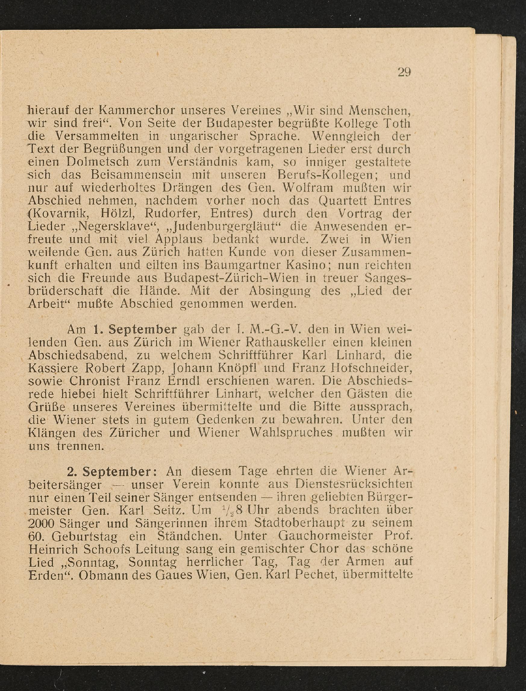 | Beschreibung | Jahresbericht des ersten Männer-Gesangsvereines der städtischen Straßenbahnen in Wien über das 27. Vereinsjahr 1929 |