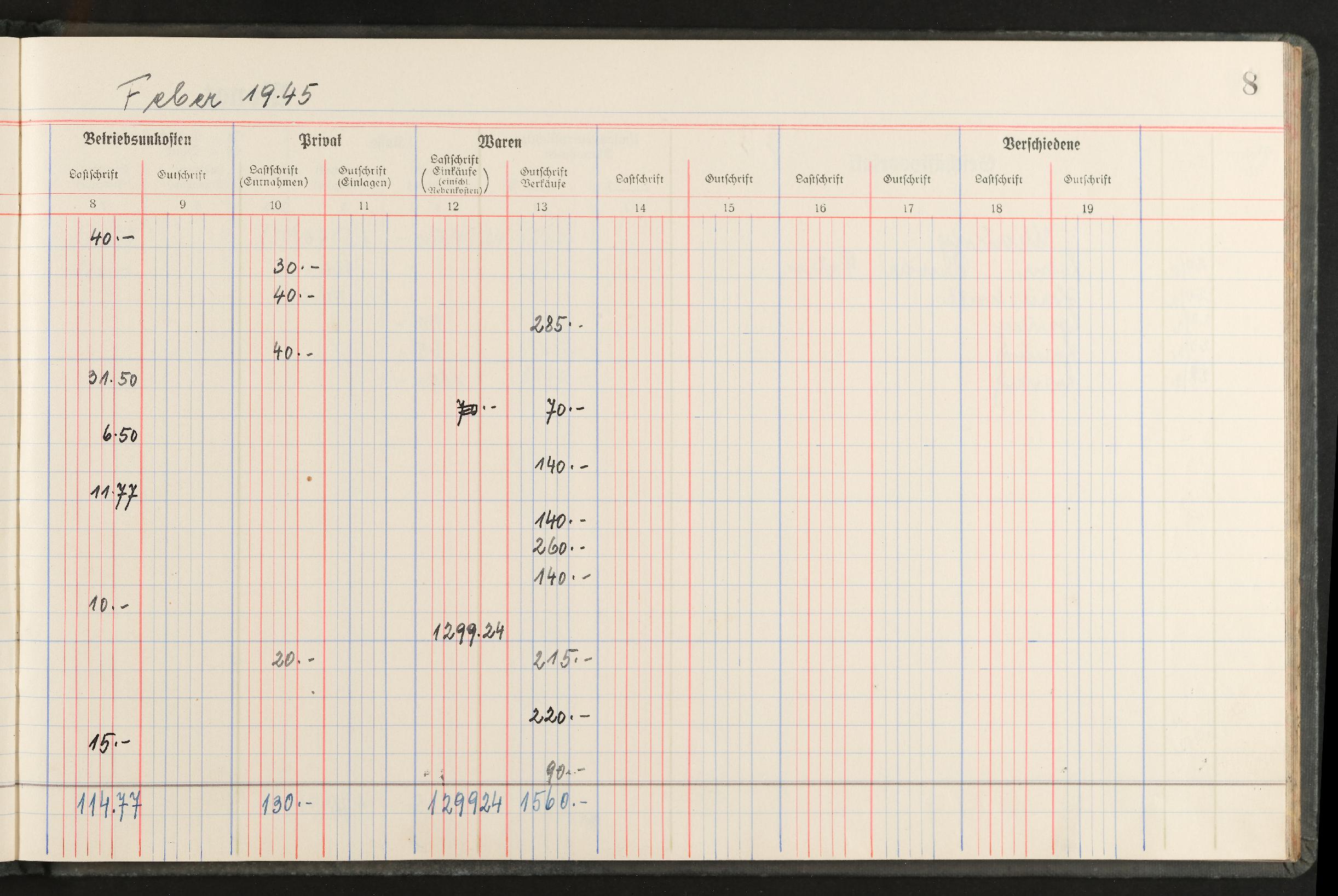 | Beschreibung | Geschäftstagebuch für den Einzelhandel nach den Mindestanforderungen für die Buchführungspflicht, Marke Alma, für den Zeitraum November 1944 bis April 1946 |