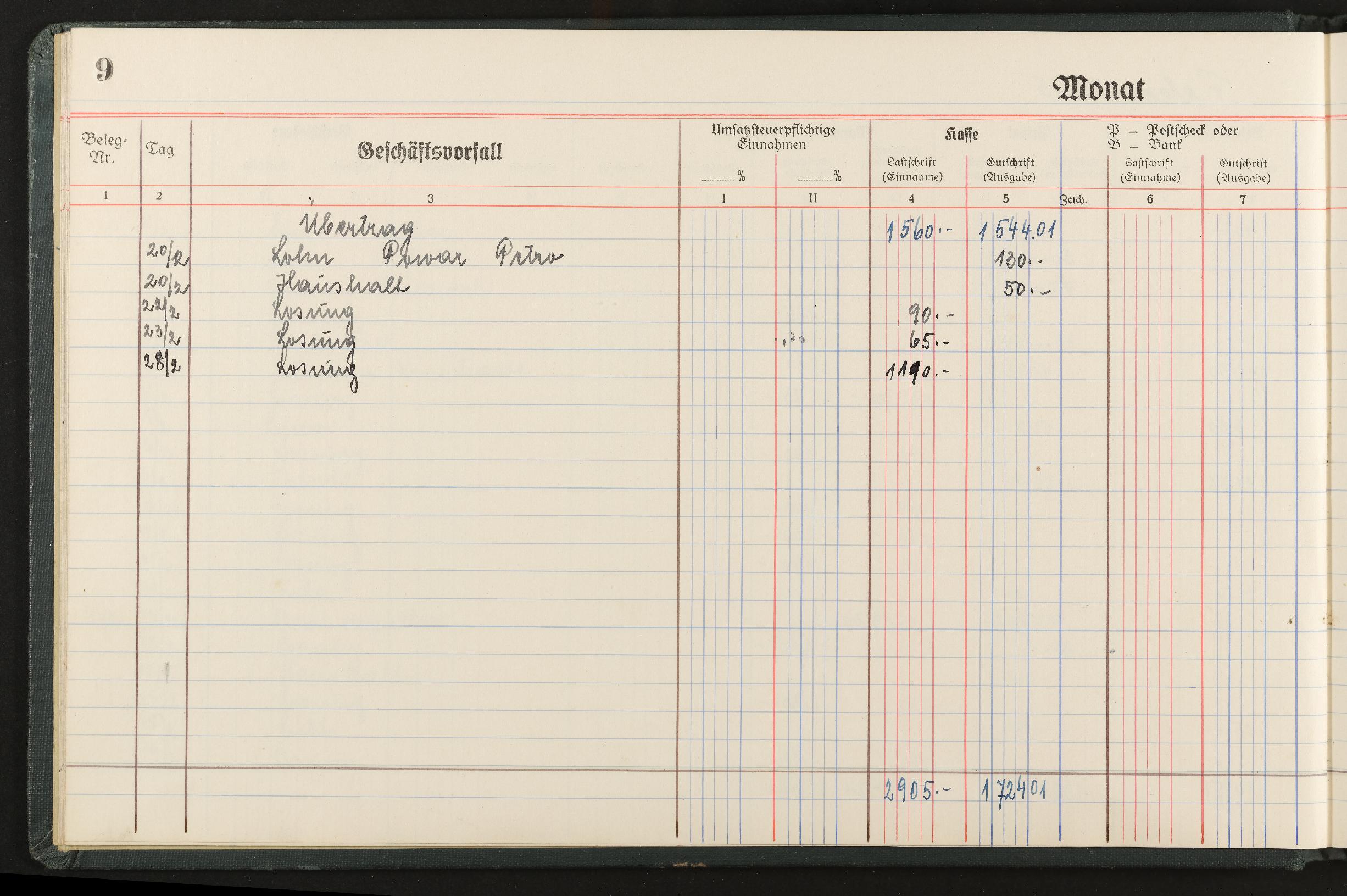 | Beschreibung | Geschäftstagebuch für den Einzelhandel nach den Mindestanforderungen für die Buchführungspflicht, Marke Alma, für den Zeitraum November 1944 bis April 1946 |