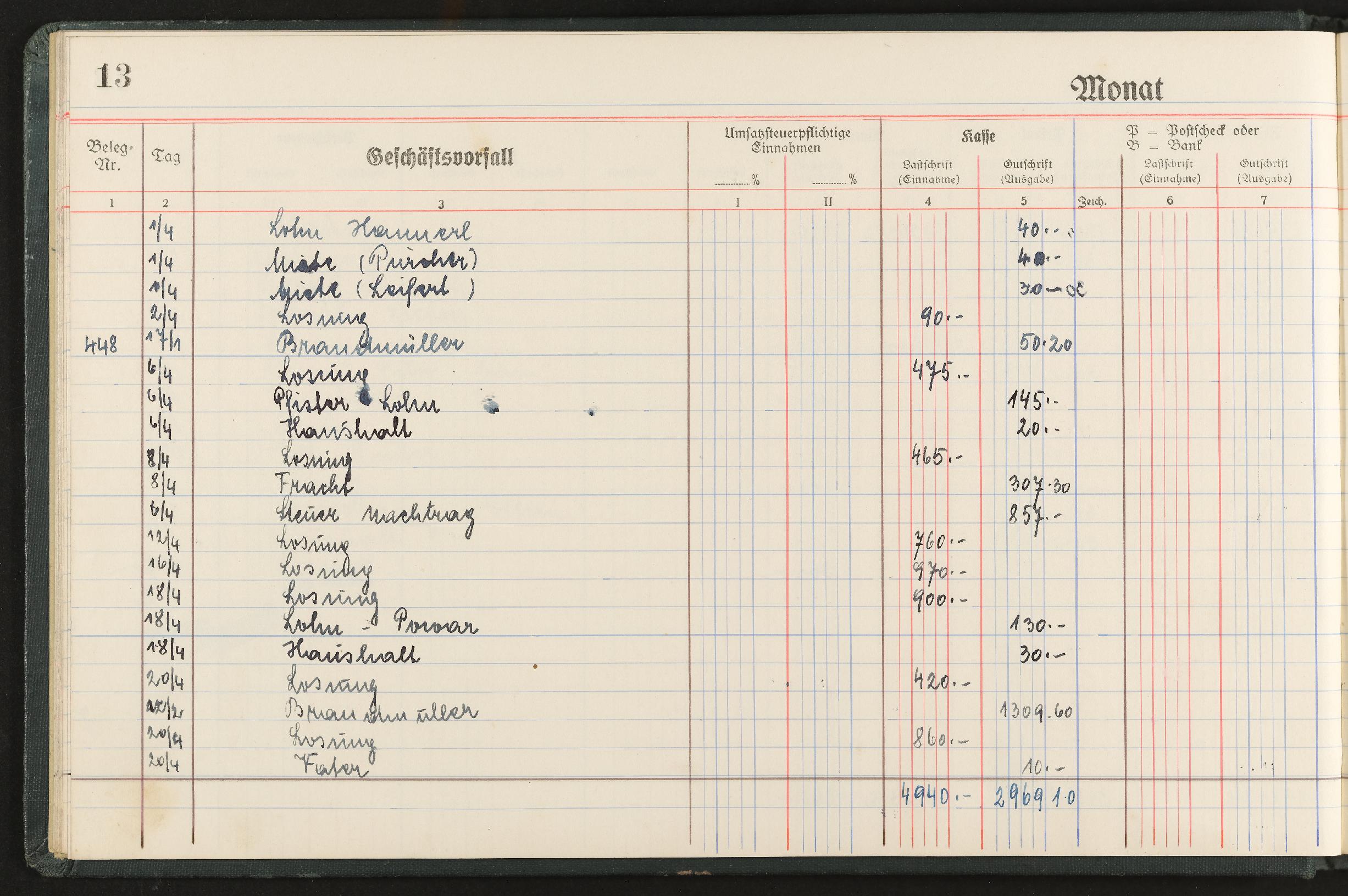 | Beschreibung | Geschäftstagebuch für den Einzelhandel nach den Mindestanforderungen für die Buchführungspflicht, Marke Alma, für den Zeitraum November 1944 bis April 1946 |