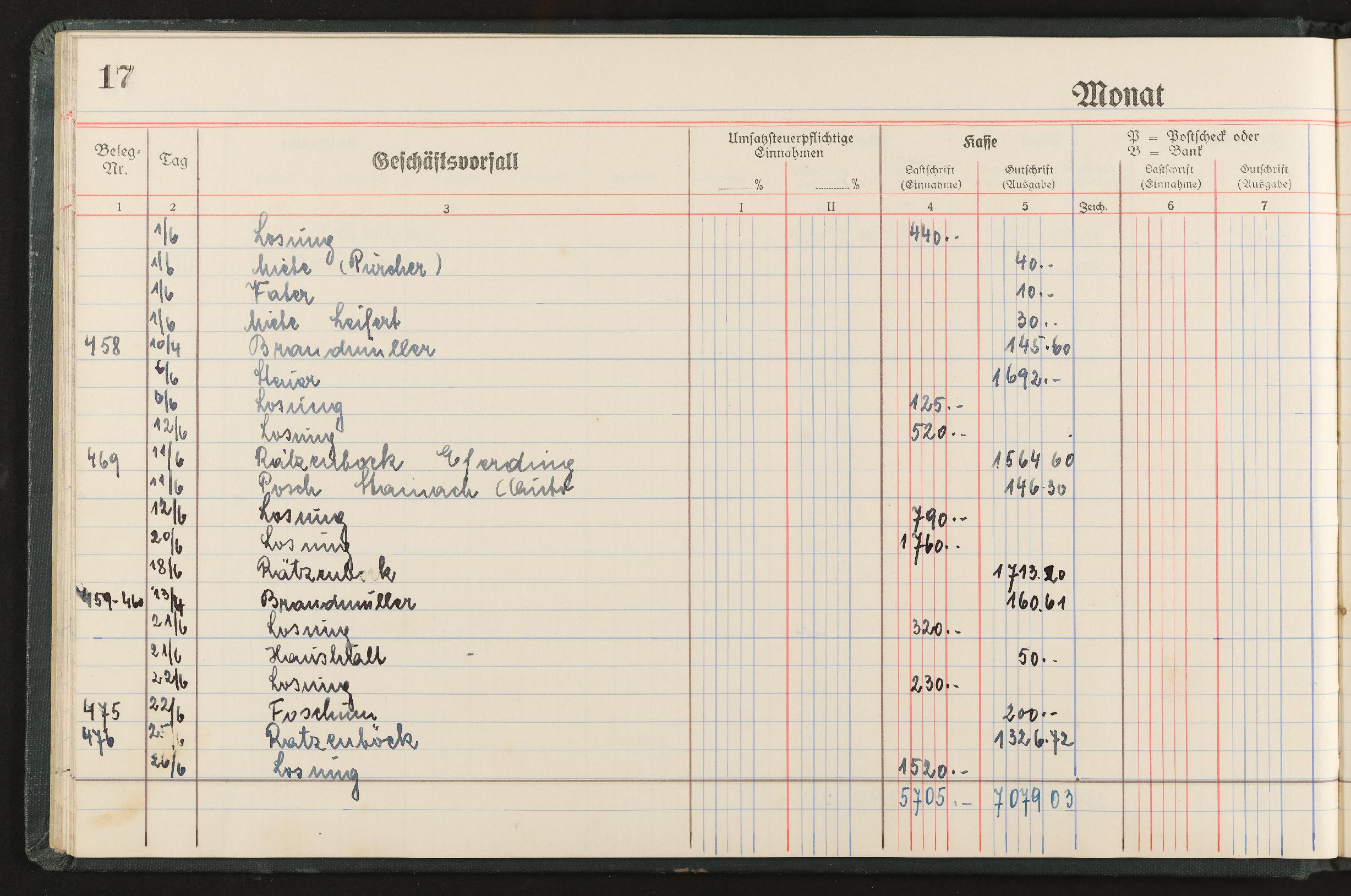 | Beschreibung | Geschäftstagebuch für den Einzelhandel nach den Mindestanforderungen für die Buchführungspflicht, Marke Alma, für den Zeitraum November 1944 bis April 1946 |