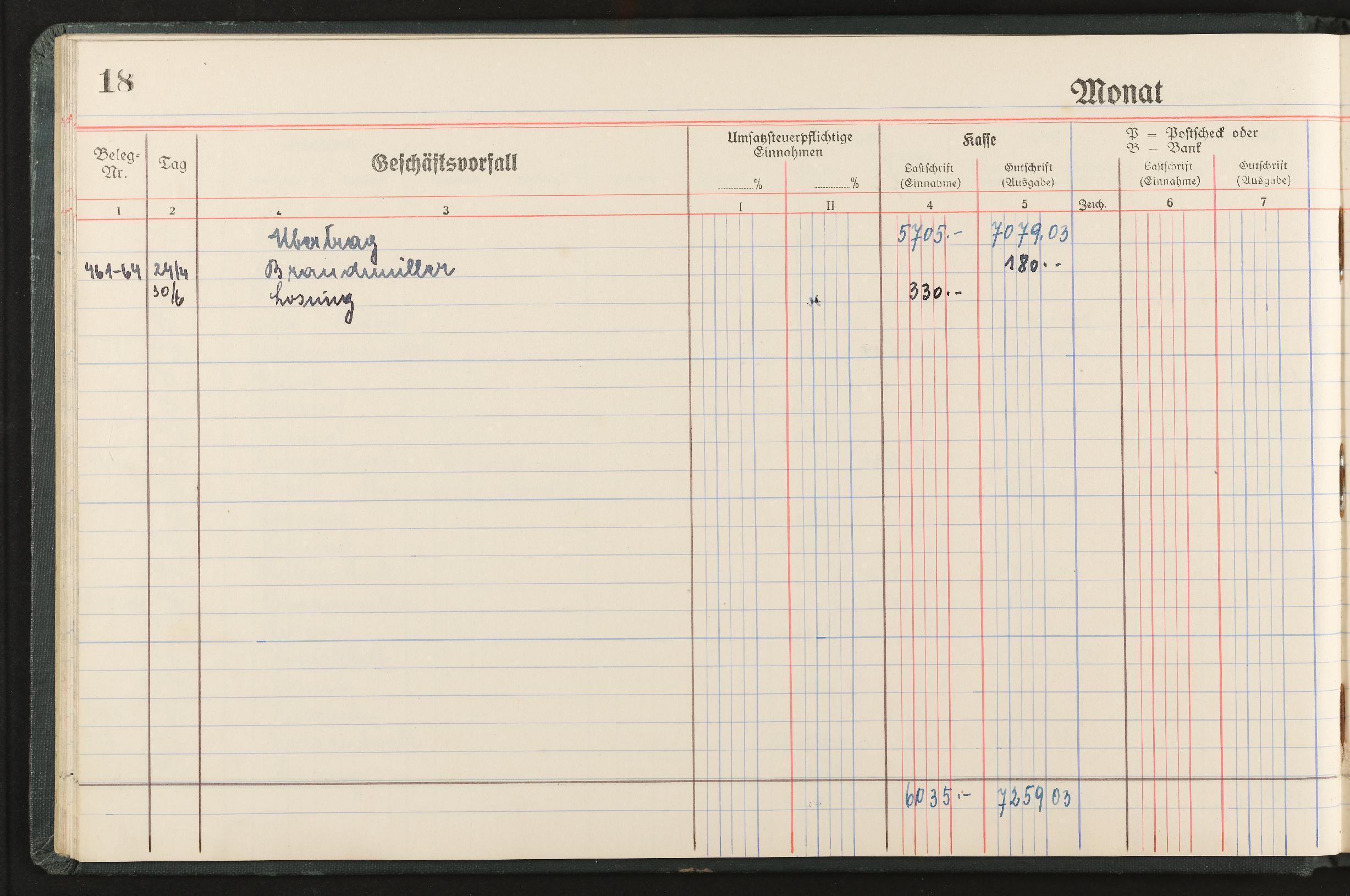 | Beschreibung | Geschäftstagebuch für den Einzelhandel nach den Mindestanforderungen für die Buchführungspflicht, Marke Alma, für den Zeitraum November 1944 bis April 1946 |