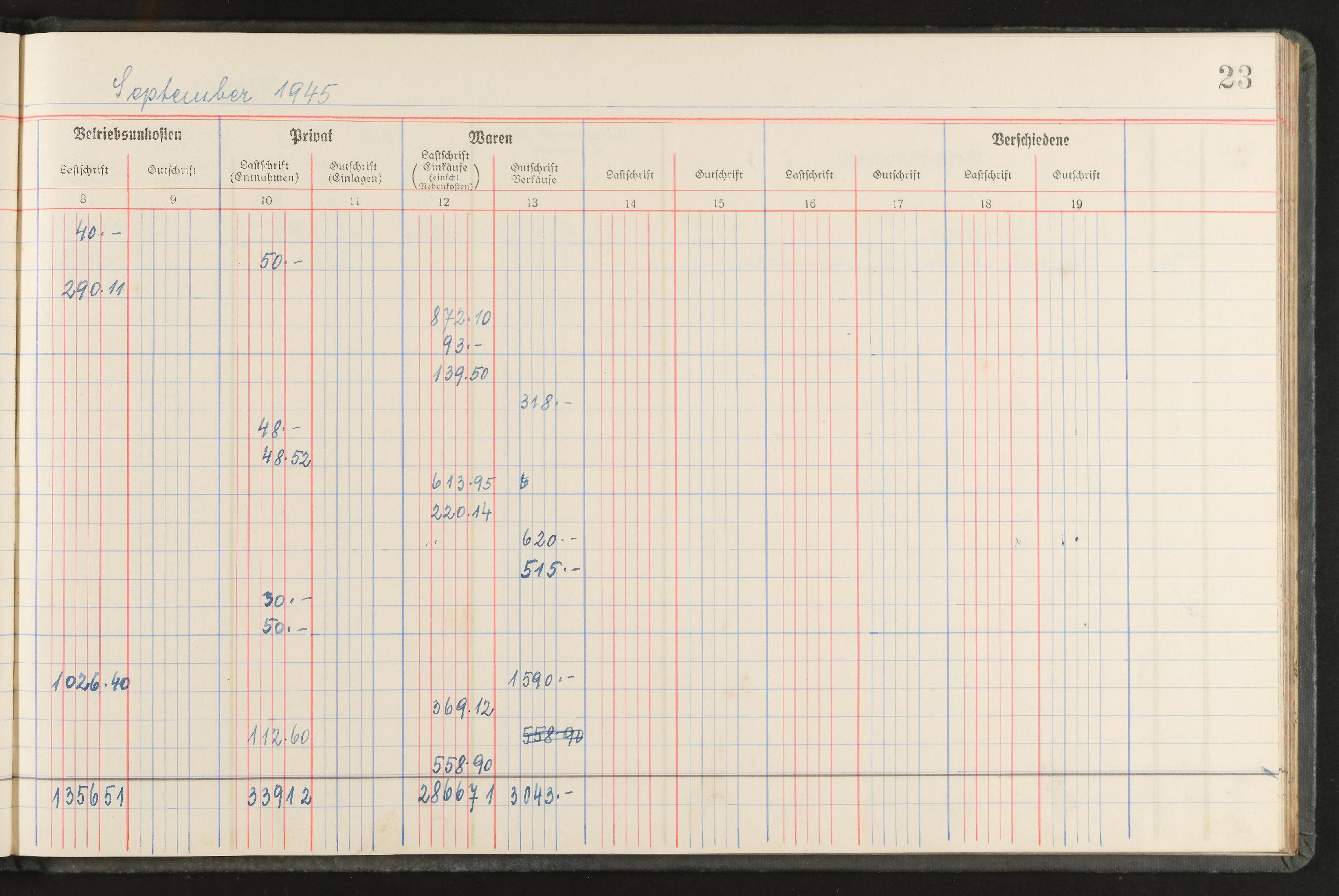 | Beschreibung | Geschäftstagebuch für den Einzelhandel nach den Mindestanforderungen für die Buchführungspflicht, Marke Alma, für den Zeitraum November 1944 bis April 1946 |