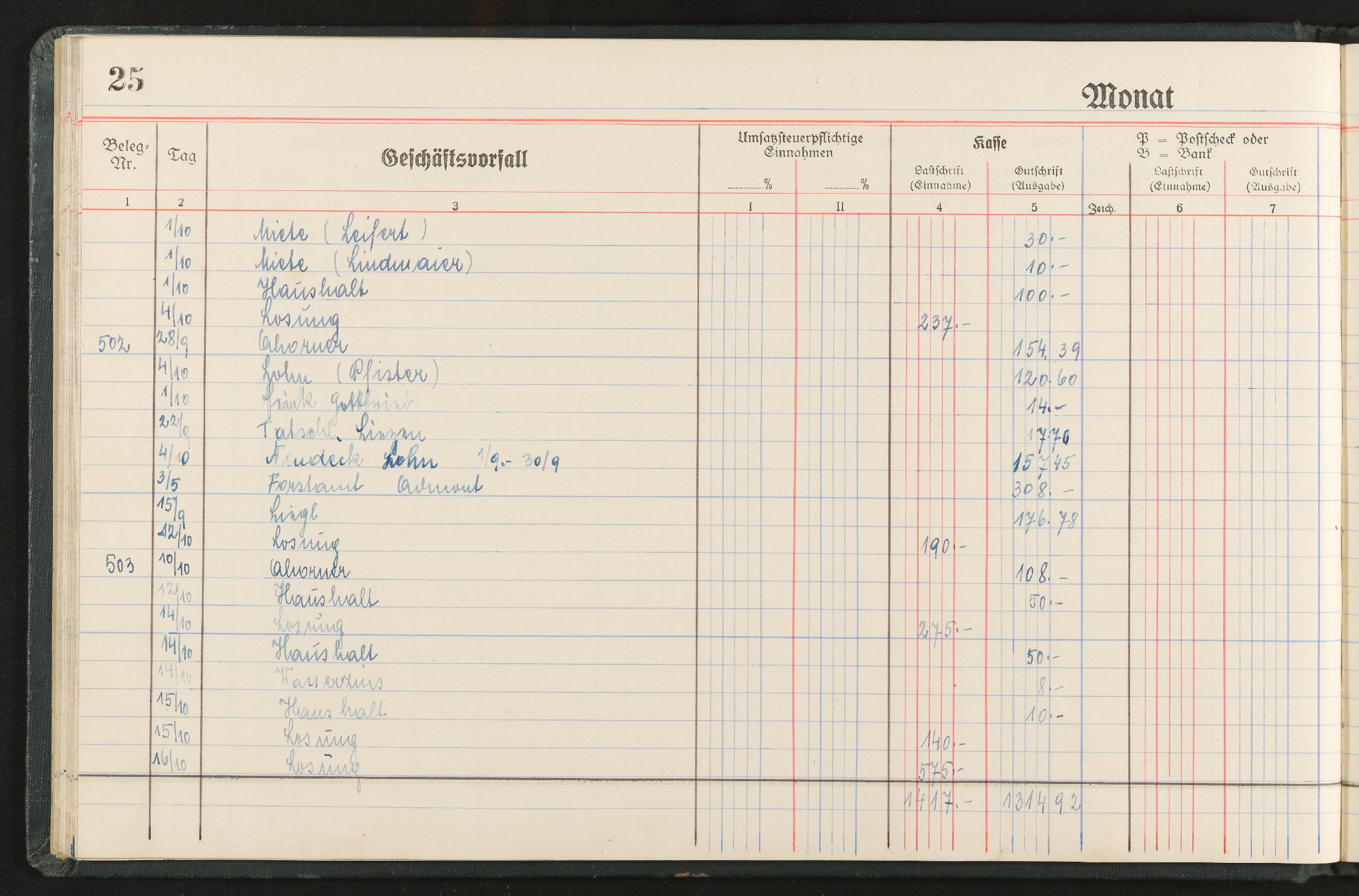 | Beschreibung | Geschäftstagebuch für den Einzelhandel nach den Mindestanforderungen für die Buchführungspflicht, Marke Alma, für den Zeitraum November 1944 bis April 1946 |