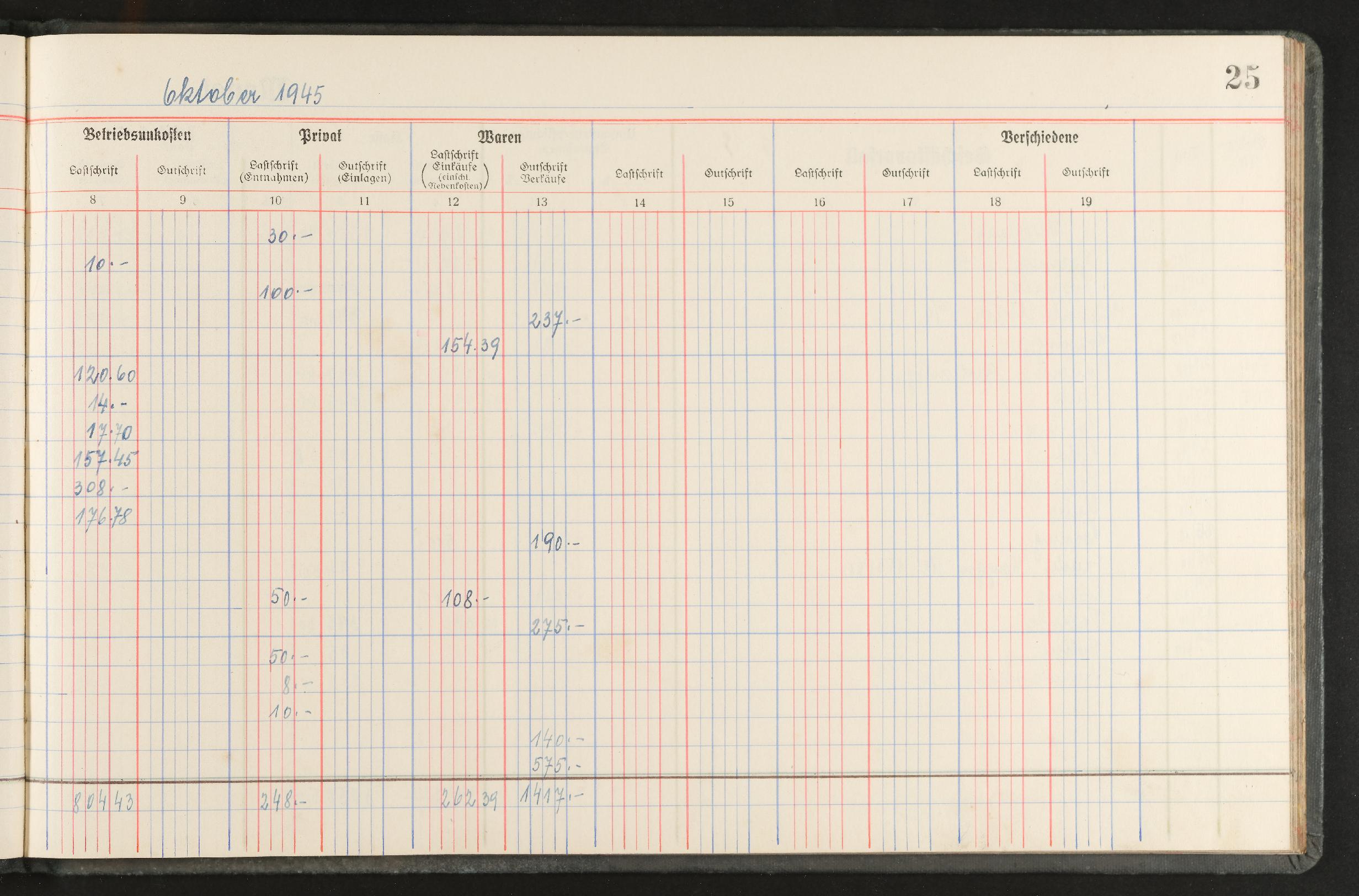 | Beschreibung | Geschäftstagebuch für den Einzelhandel nach den Mindestanforderungen für die Buchführungspflicht, Marke Alma, für den Zeitraum November 1944 bis April 1946 |