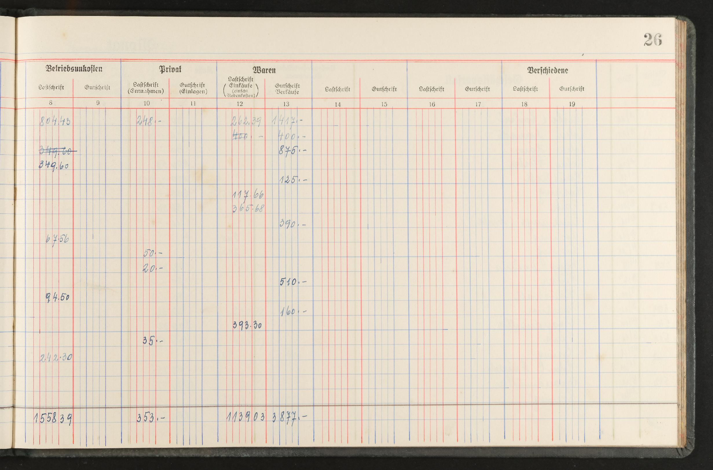 | Beschreibung | Geschäftstagebuch für den Einzelhandel nach den Mindestanforderungen für die Buchführungspflicht, Marke Alma, für den Zeitraum November 1944 bis April 1946 |