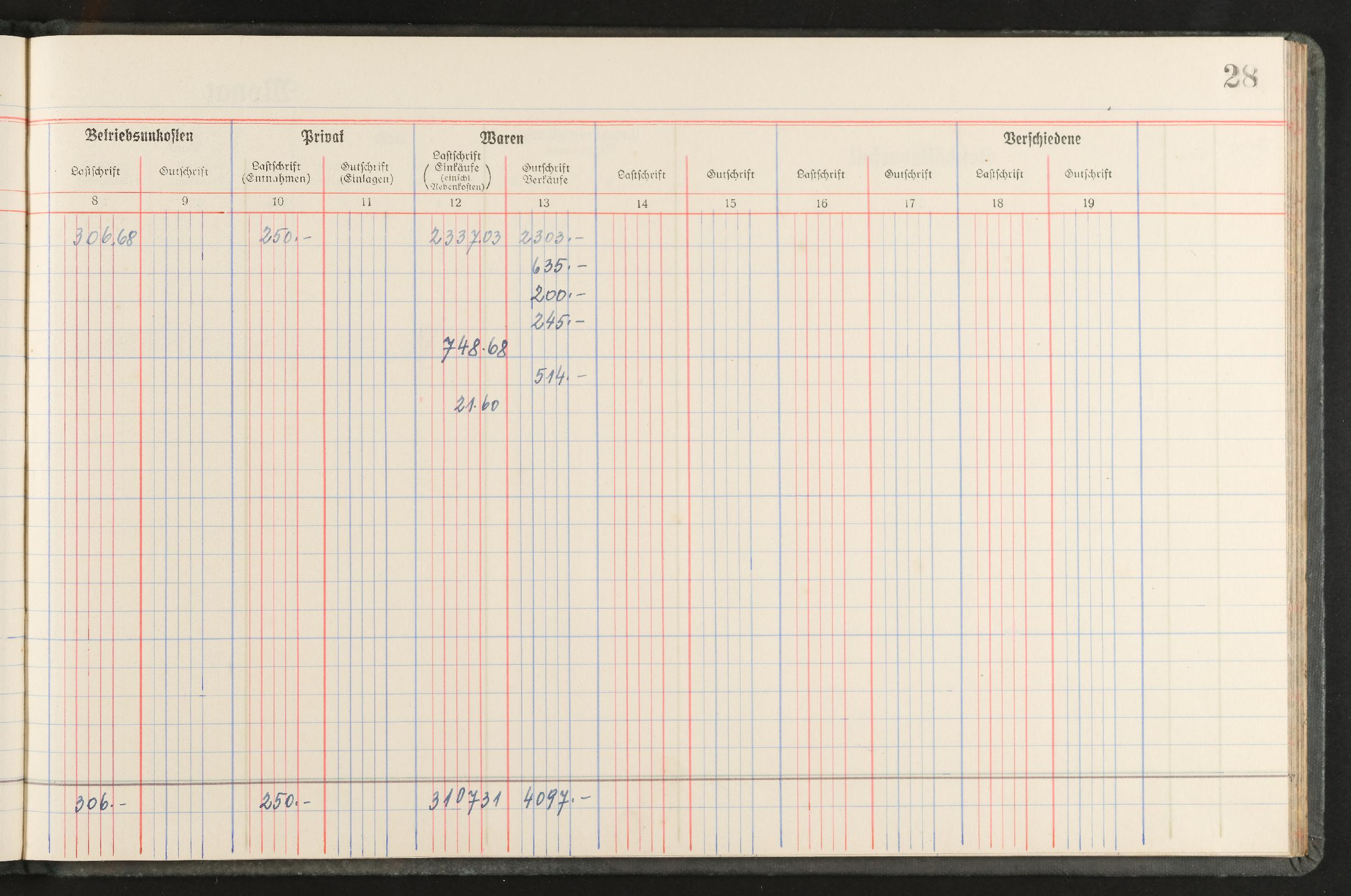| Beschreibung | Geschäftstagebuch für den Einzelhandel nach den Mindestanforderungen für die Buchführungspflicht, Marke Alma, für den Zeitraum November 1944 bis April 1946 |