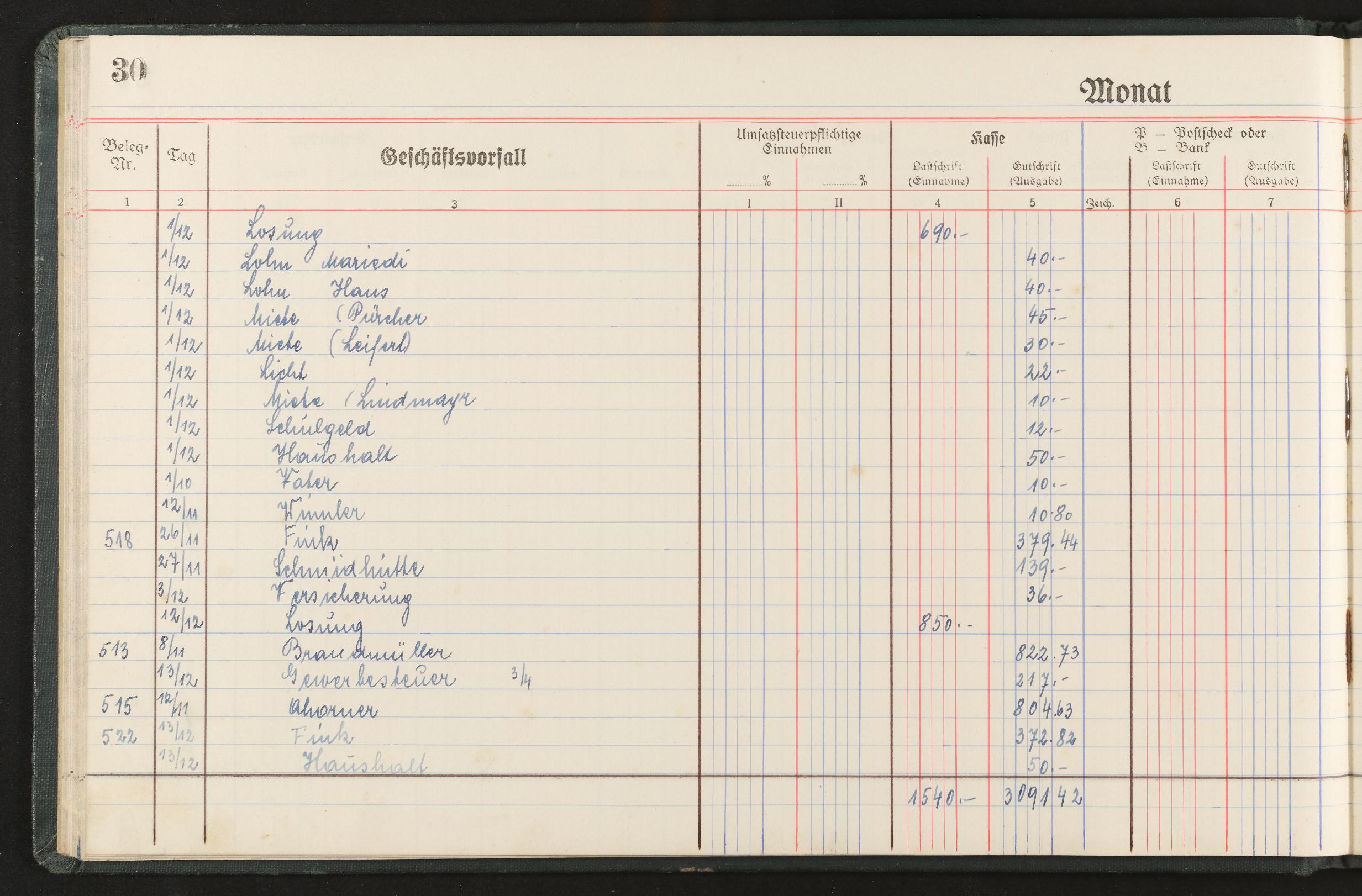 | Beschreibung | Geschäftstagebuch für den Einzelhandel nach den Mindestanforderungen für die Buchführungspflicht, Marke Alma, für den Zeitraum November 1944 bis April 1946 |