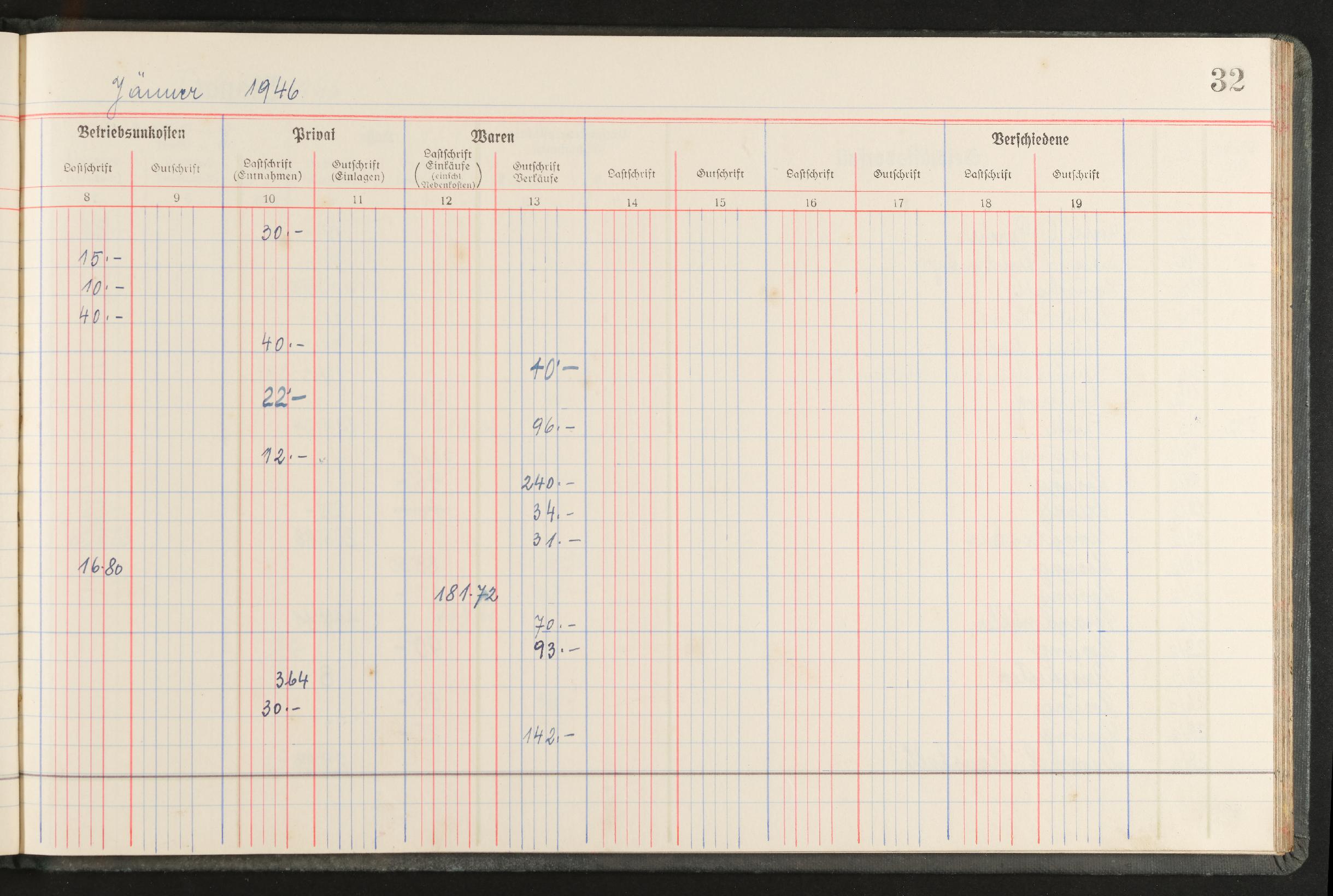 | Beschreibung | Geschäftstagebuch für den Einzelhandel nach den Mindestanforderungen für die Buchführungspflicht, Marke Alma, für den Zeitraum November 1944 bis April 1946 |