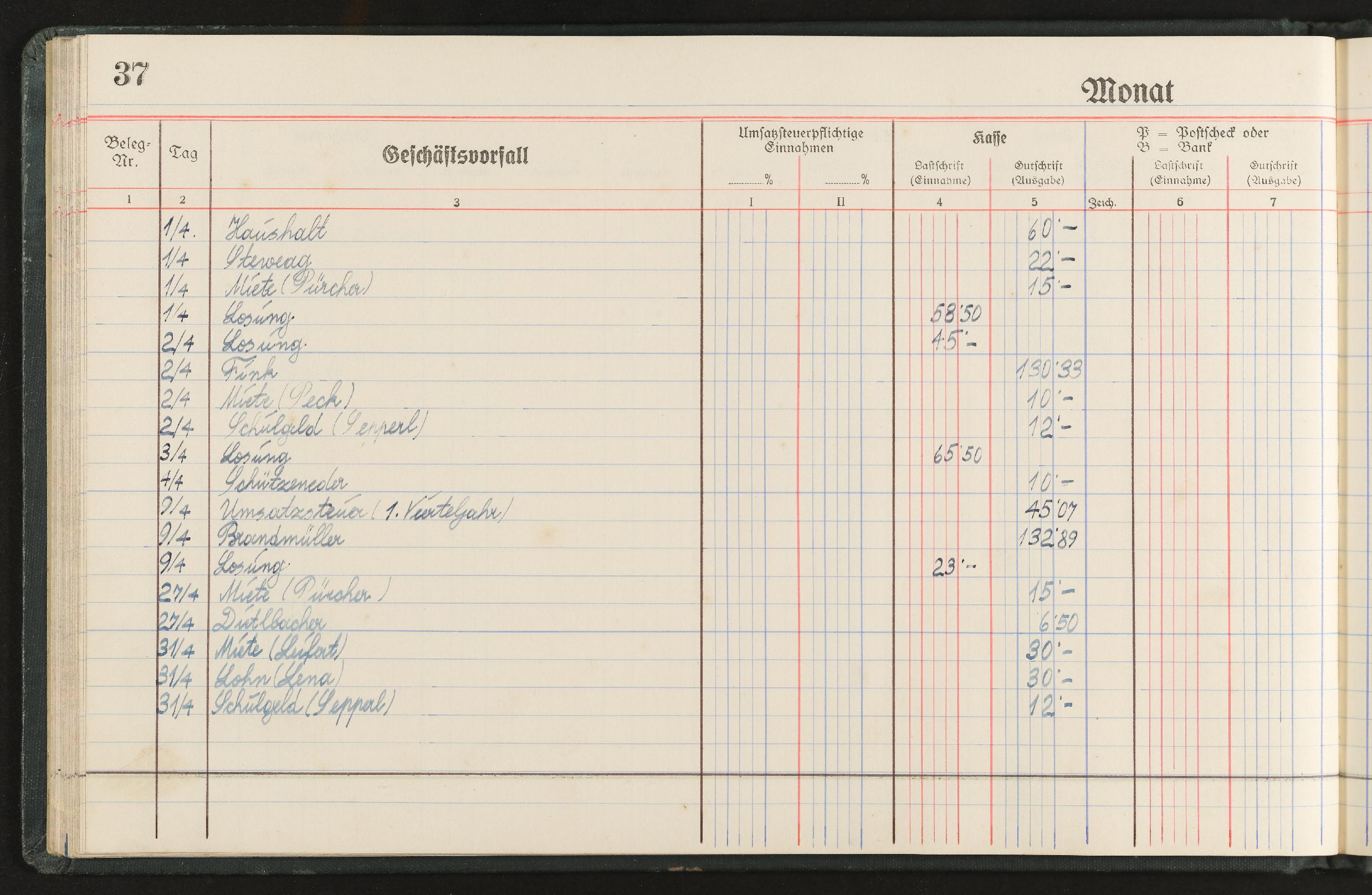 | Beschreibung | Geschäftstagebuch für den Einzelhandel nach den Mindestanforderungen für die Buchführungspflicht, Marke Alma, für den Zeitraum November 1944 bis April 1946 |