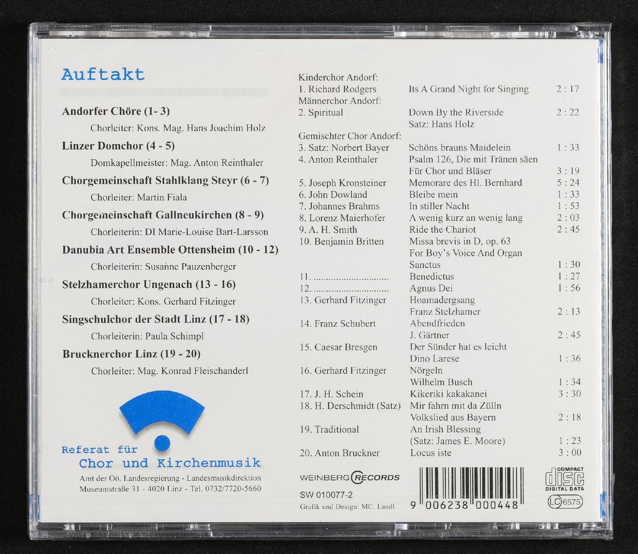 | Beschreibung | CD Chorlandschaft Oberösterreich, Inhaltsverzeichnis |