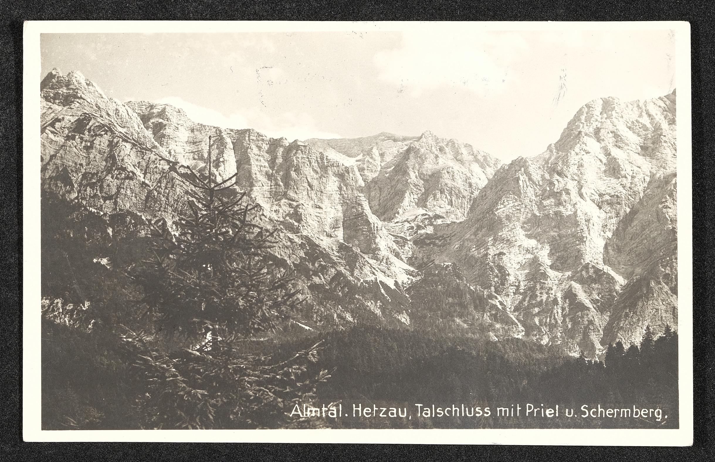 | Titel | Almtal, Hetzau, Talschluss mit Priel und Schermberg |