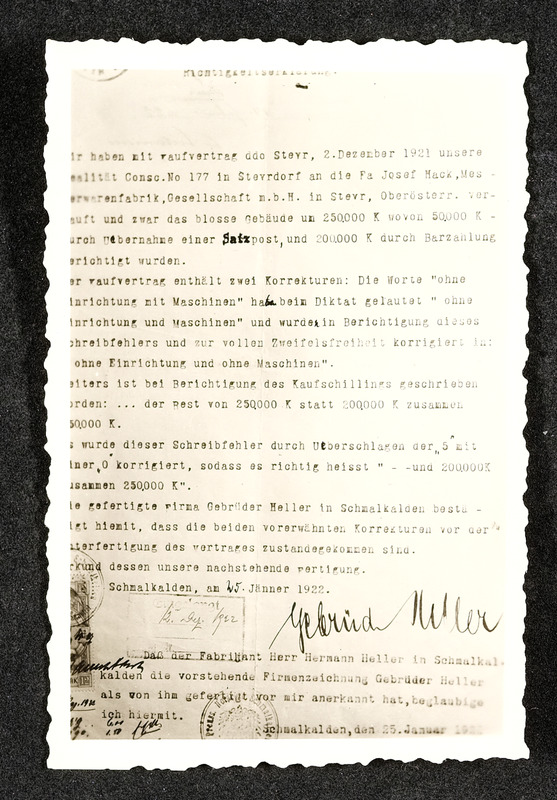 Hack-Werke Verkaufsurkunde Heller-Werke