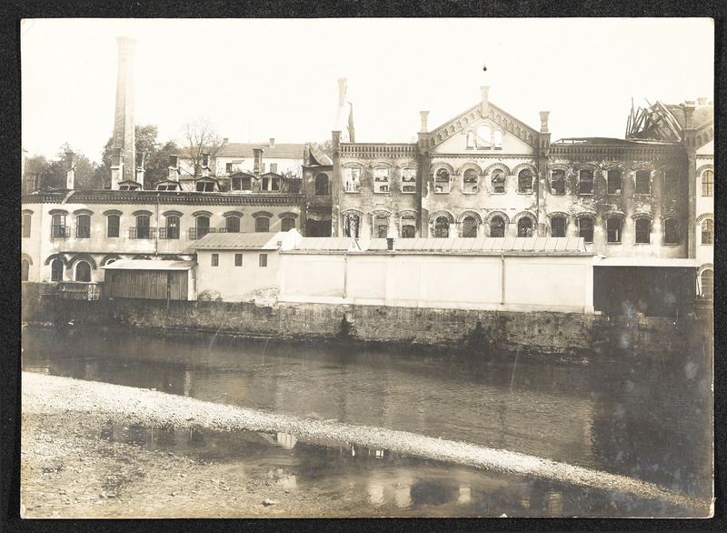 Abgebranntes Fabriksgebäude der Waffenfabrik im Wehrgraben in Steyr, Objekt IX, 1. Mai 1913
