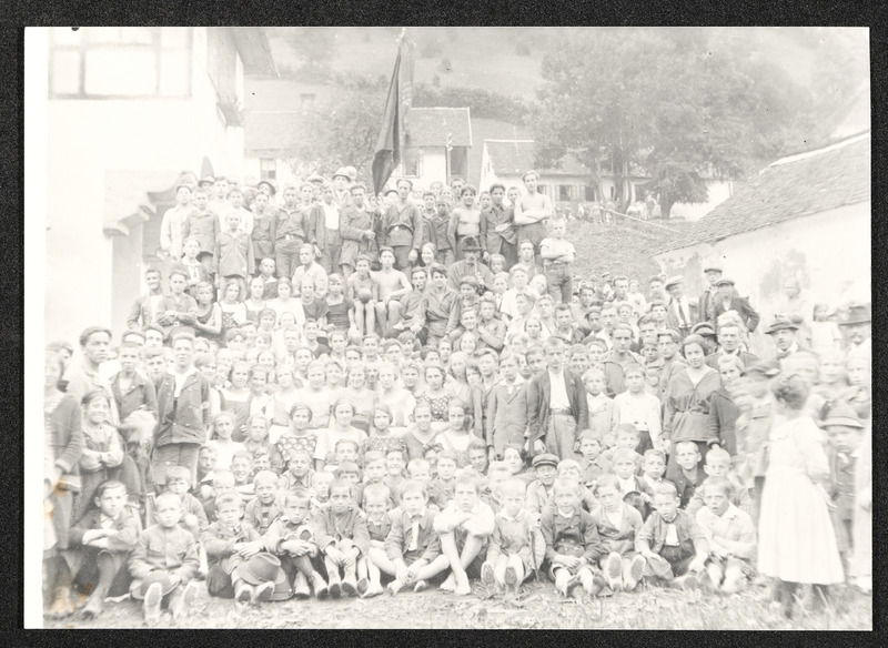 Gruppenfoto der Kinderfreunde Steyr bei einem Ausflug nach Reichraming, 1925/1926