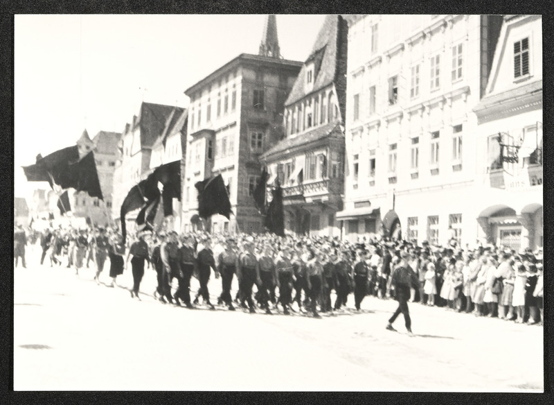 Aufmarsch auf dem Steyrer Stadtplatz, 1930, verschwommene Aufnahme