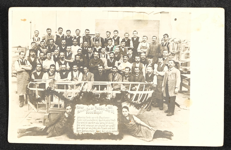Gruppenfoto von Abgeordneten, Funktionären und Politikern der SDAP, Nationalratsabgeordneter Ferdinand Hanusch (Bildmitte), Bürgermeister der Stadt Steyr Josef Wokral (2.v.l.), Landeshauptmann von Oberösterreich Johann Nepomuk Hauser (2.v.r.)