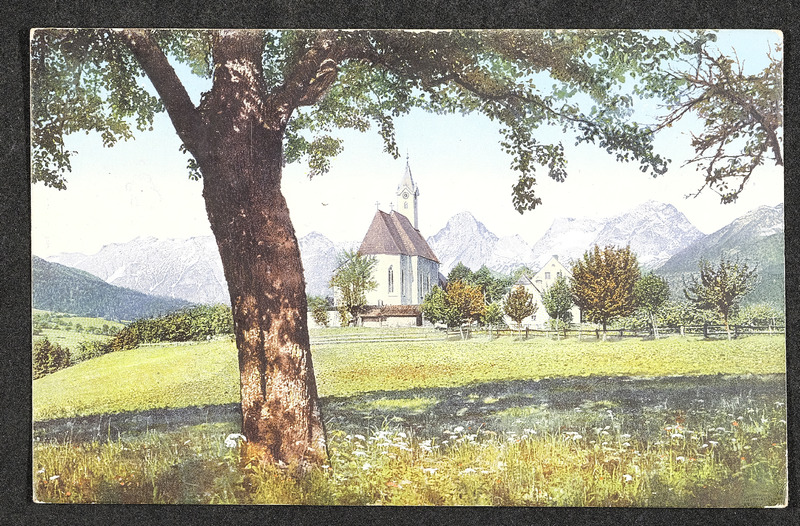 Ansichtskarte mit Motiv Leitmeritz, Allerheiligenkirche. Herausgegeber: Deutscher Schulverein, Elbebilder Nr. 1, Karte Nr. 221, und persönliche Nachricht