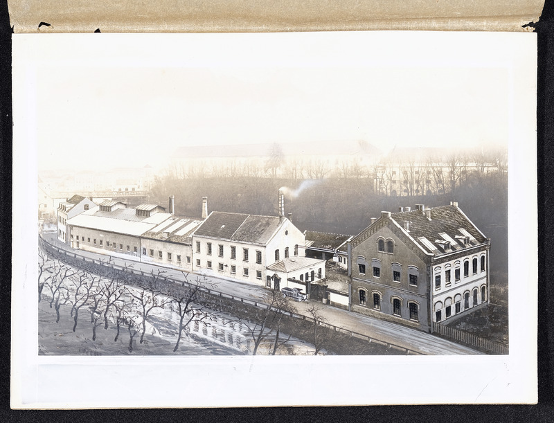 Hack-Werke Betriebsansicht mit Schloss Lamberg im Hintergrund