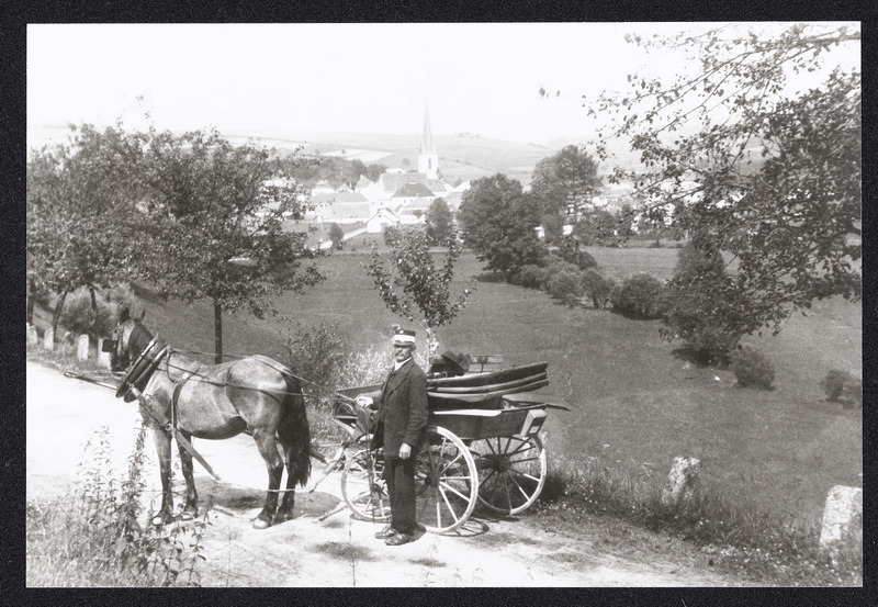 Postbediensteter mit Pferdekutsche auf der Landstraße